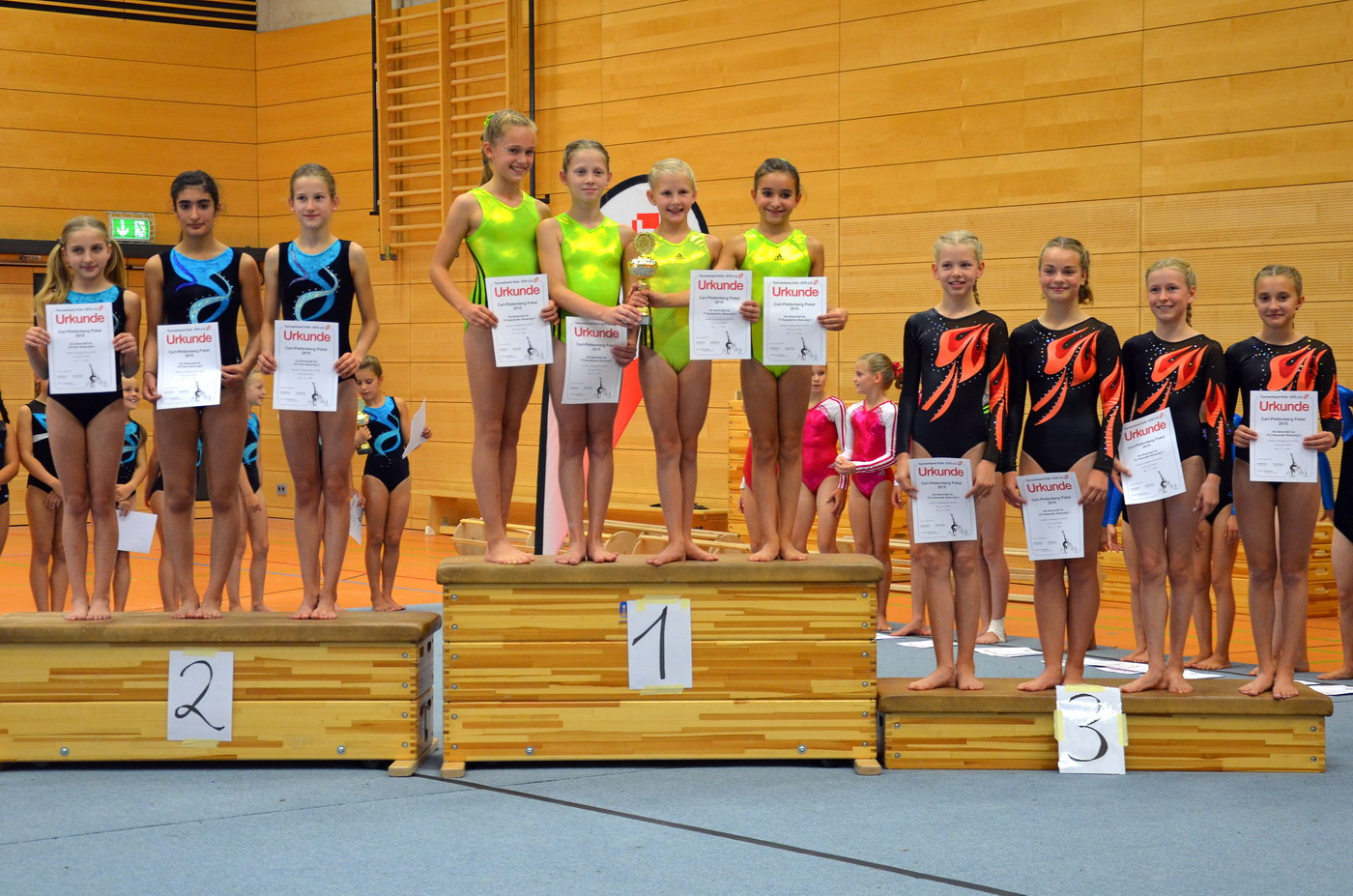 Ähnlich erfreulich lief es auch bei den Jüngeren. Angelina gewann souverän im Jahrgnag 2005 und jünger während Sarah sich über den dritten Platz freuen konnte. Lisa belegte in ihrem ersten Kürwettkampf Rang 6 und Alina Rang 8. Julia, bei der erst zwei Wochen zuvor entschieden wurde, dass sie an dem Wettkampf teilnehmen würde, klassifizierte sich am Ende auf Rang 14.
