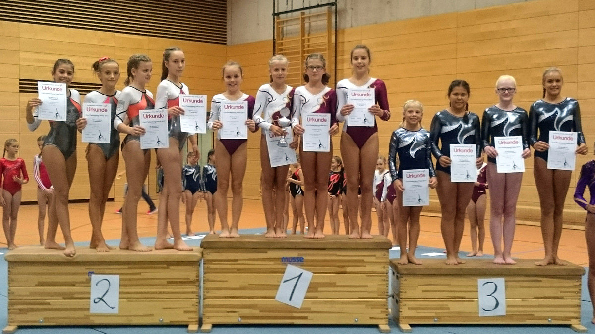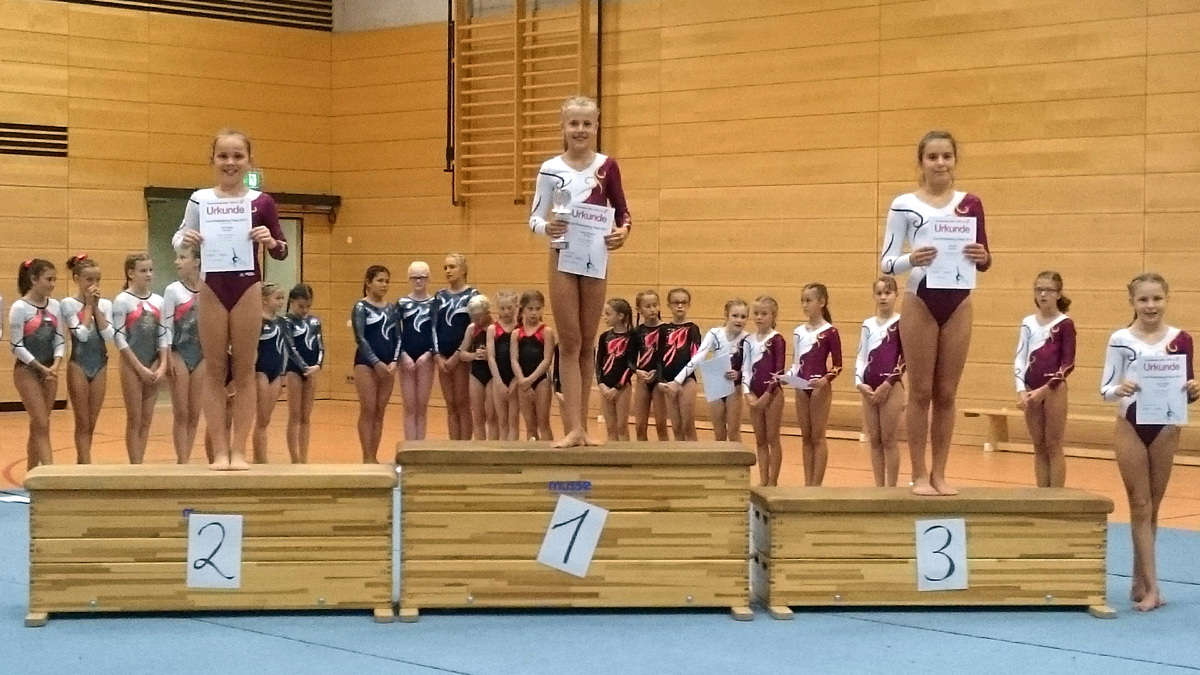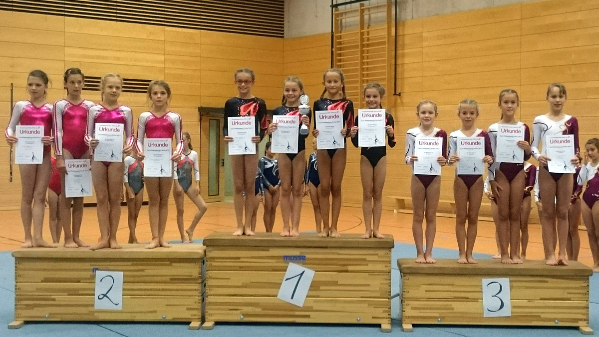 Zusätzlich zu den Mannschaftsturnerinnen ging in der Einzelwertung auch noch Lisa Liesenfeld an den Start. So ergab sich für den TSV Porz eine Teilnehmerzahl von 13 Turnerinnen in den einzelnen Altersklassen. Auch hier konnten noch 3 weitere Pokale mit nach Porz gebracht werden. So durften sich am Ende der Wettkampfdurchgänge Jessica Haelke (2001), Cecile Weissenburger (2002) und Malina Wendland (2006) auf dem höchsten Platz positionieren und die Pokale mit einem Siegerlächeln entgegennehmen. Aber auch die anderen Platzierungen konnten sich sehen lassen. So erzielte Sarah Shirvani Zadeh (2001) den 3. Platz, Natalie Kann (2003) den 2. Platz, Angelina Kann (2005) den 3. Platz, Sarah Adolphs (2006) den 2. Platz, Alina Bart (2006) den 3. Platz, Lisa Liesenfeld (2006) den 4. Platz, Julia Korn (2007) 6. Platz, Celina Neumann (2008) den 9. Platz, Charlotte Liesenfeld (2008) den 10. Platz und Veronica Schäfer (2006) den 13. Platz.