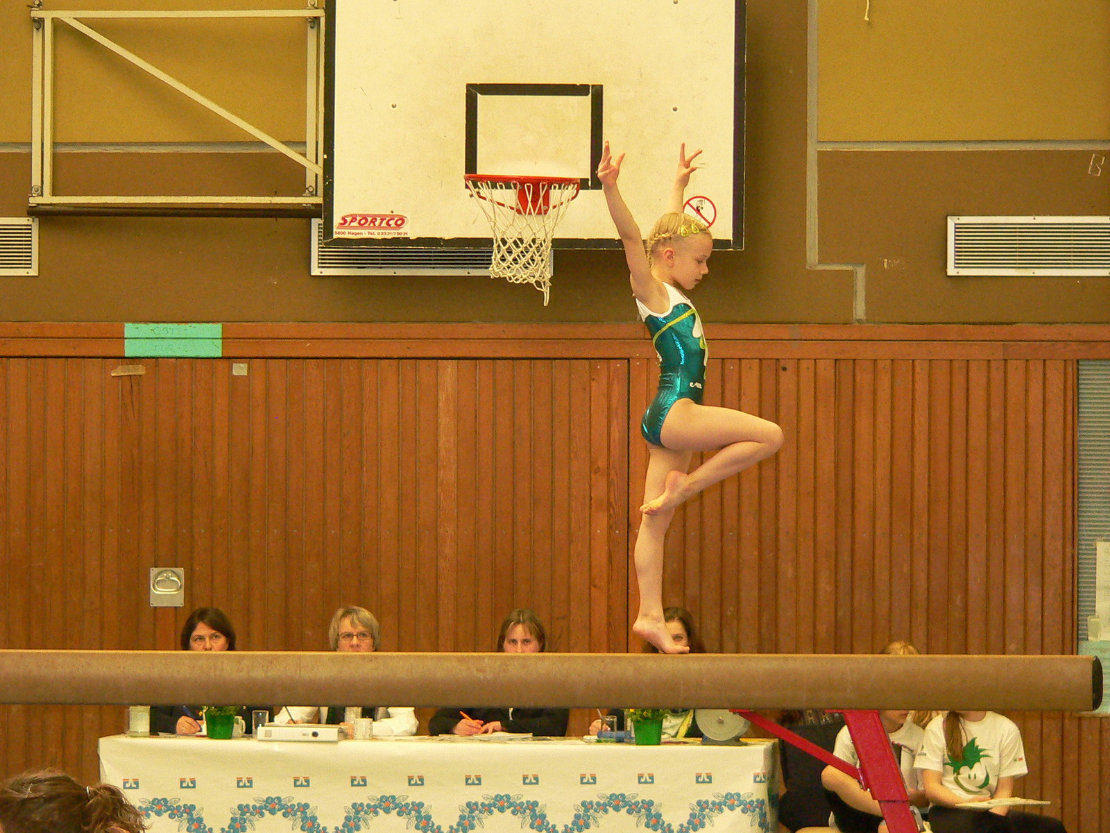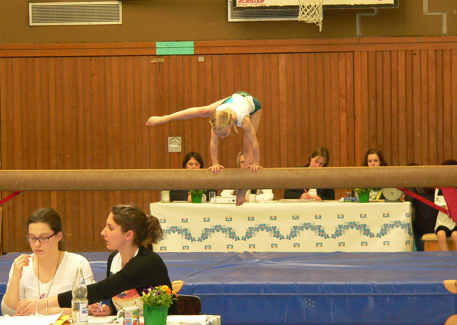 Für Annika , deren Aussichten auf einen Treppchenplatz sehr gut waren, hieß es Nerven bewahren und ja nicht runterfallen. Das machte sie dann auch. Annika turnte eine saubere Übung, bekam allerdings beim technischen Wert auch einen nicht lang genug gestandenen Handstand mit 1,5 Punkten abgezogen.