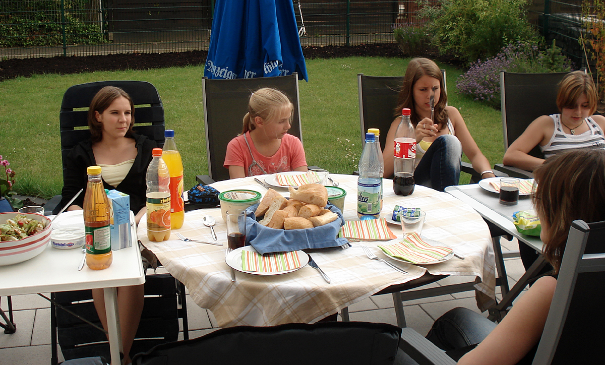 Nachdem auch die Nachzüglerin Jasmin, die an diesem Tag ihre Weisheitszähne rausbekommen hatte, eingetroffen war, deckten alle zusammen den Tisch.