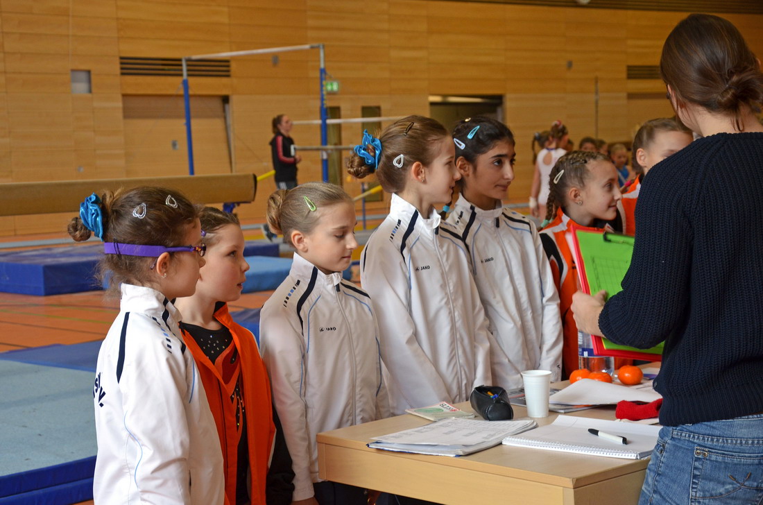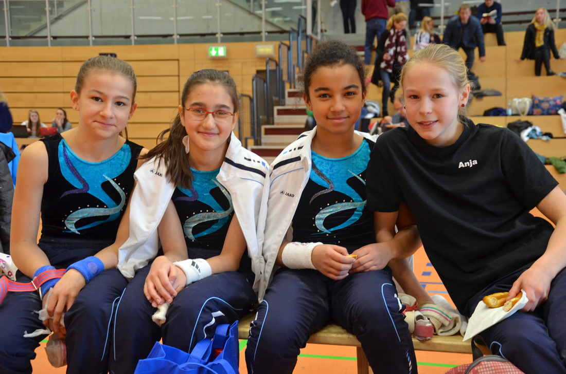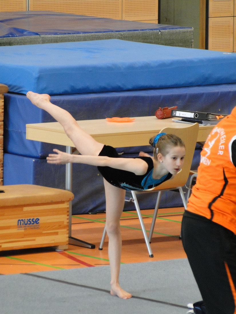 Nach einer kurzen Mittagspause wurde der Wettkampf fortgesetzt. In einem großen Teilnehmerfeld von 21 Turnerinnen der Jahrgänge 2003/2004 starteten im Nachwuchs-Pokal Tanin Azarnousha, Natalie Kann und Maria Moisseyenko und in einem Mini-Pokal (Turnerinnen im Alter 8/9 Jahre) - Angelina Kann.