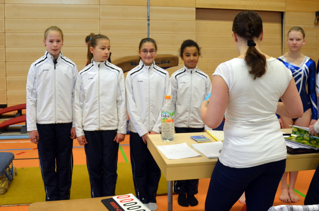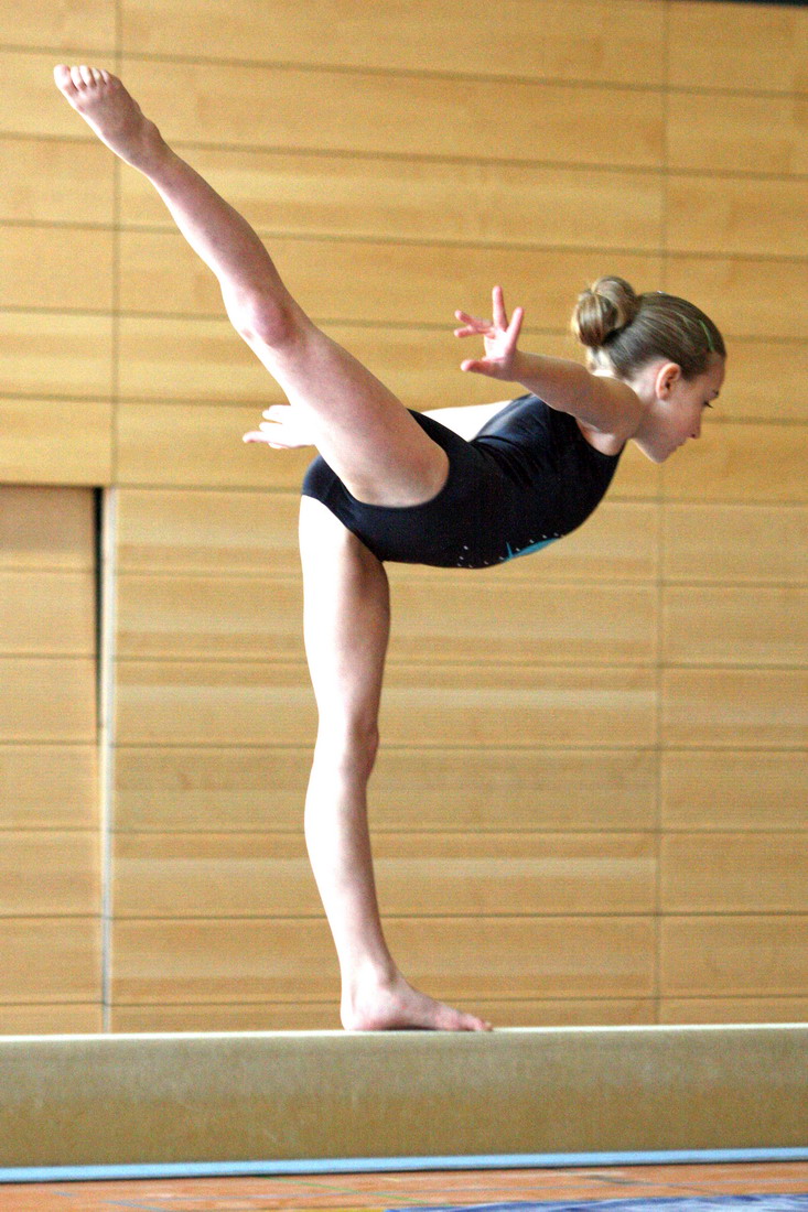 Das erste Gerät, der Balken, lief nicht ganz ohne Fehler. Nur Natalie konnte die Nervosität beherrschen und ihre Übung ohne großen Wackler beenden. Angelina stürzte beim Rad, Tanin und Maria turnten nicht ganz so sicher wie im Training. Die Mädchen verloren hier wertvolle Punkte, die sie dann an den weiteren Geräten nachholen mussten. Die beste Leistung zeigten sie am Barren, wo Natalie und Angelina die schönsten Übungen zeigten und dementsprechend die besten Noten der Konkurrenz bekamen.
