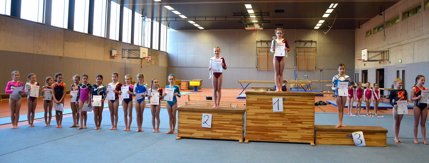 Das Endergebnis war aus Porzer Sicht sehr zufriedenstellend. Ein spannendes Kopf-an-Kopf Rennen fand während des ganzen Wettkampfs zwischen Angelina und Malina statt. Letztendlich gewann Angelina den 1. Platz und den Nachwuchs-Pokal. Malina platzierte sich auf dem 2. Rang mit einem Rückstand von nur 0,15 Punkten! Sarah verpasste das Treppchen leider um zwei Plätze, auf Grund eines Sturzes am Stufenbarren landete sie letztendlich auf dem 5. Rang. Alina beendete den Wettkampf auf dem 8. und Lisa auf dem 14. Platz.
