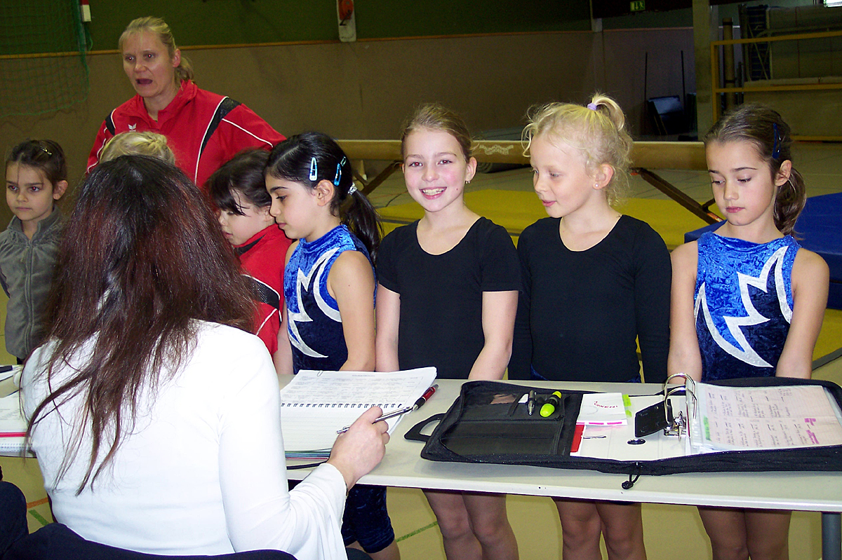 Eine Überraschung wartete auf die Mädchen, die im zweiten Durchgang des Tages turnten, denn Anja Brinker (deutsche Teilnehmerin an den letzten olympischen Spielen) übernahm die Siegerehrung und gratulierte den jungen Nachwuchsturnerinnen zu ihren Leistungen.