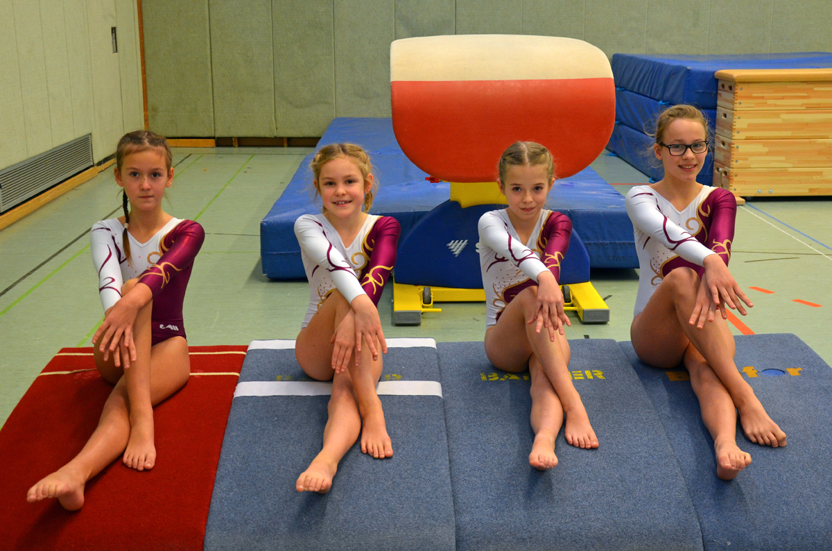 Zunächst durften Veronica Schäfer, Celina Neumann, Charlotte Liesenfeld und Julia Korn im Wettkampf der AK 10-11 zeigen, was in ihnen steckt. Die Mannschaft begann, sehr ungewöhnlich für die Mädchen aus Porz, am Barren.