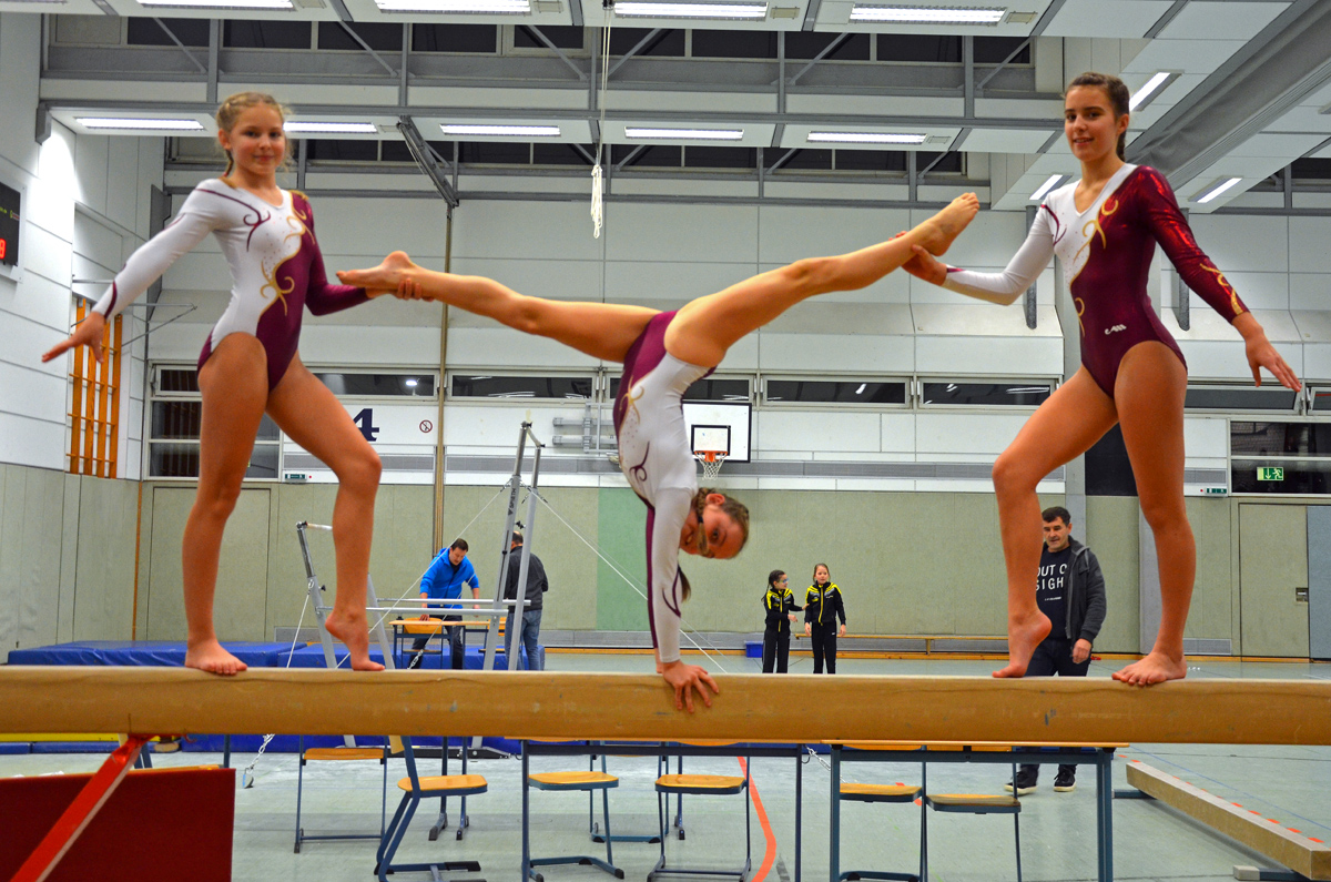Die Mädels zeigten ansprechende, flüssige Übungen und wurden mit entsprechenden Wertungen belohnt. Da sich der Barren nur schwer verstellen ließ, konnten sich Celina und Charlotte an diesem Tag ebenfalls kurzfristig davon überzeugen, dass sie weiter springen können, als gedacht. Die Mannschaft konnte sich hier, mit ein paar Zehnteln Rückstand, den zweiten Rang sichern. Weiter gings, ans immer wieder gefürchtete Zittergerät, den Schwebebalken. Celina und Julia kamen sehr gut durch ihre Übungen und auch Veronica erhielt nicht viel Abzug. Leider musste Charlotte das Gerät beim Spreizsprung unfreiwillig verlassen. Nichtsdestotrotz konnte die Mannschaft auch hier die zweitbeste Mannschaftswertung erreichen.