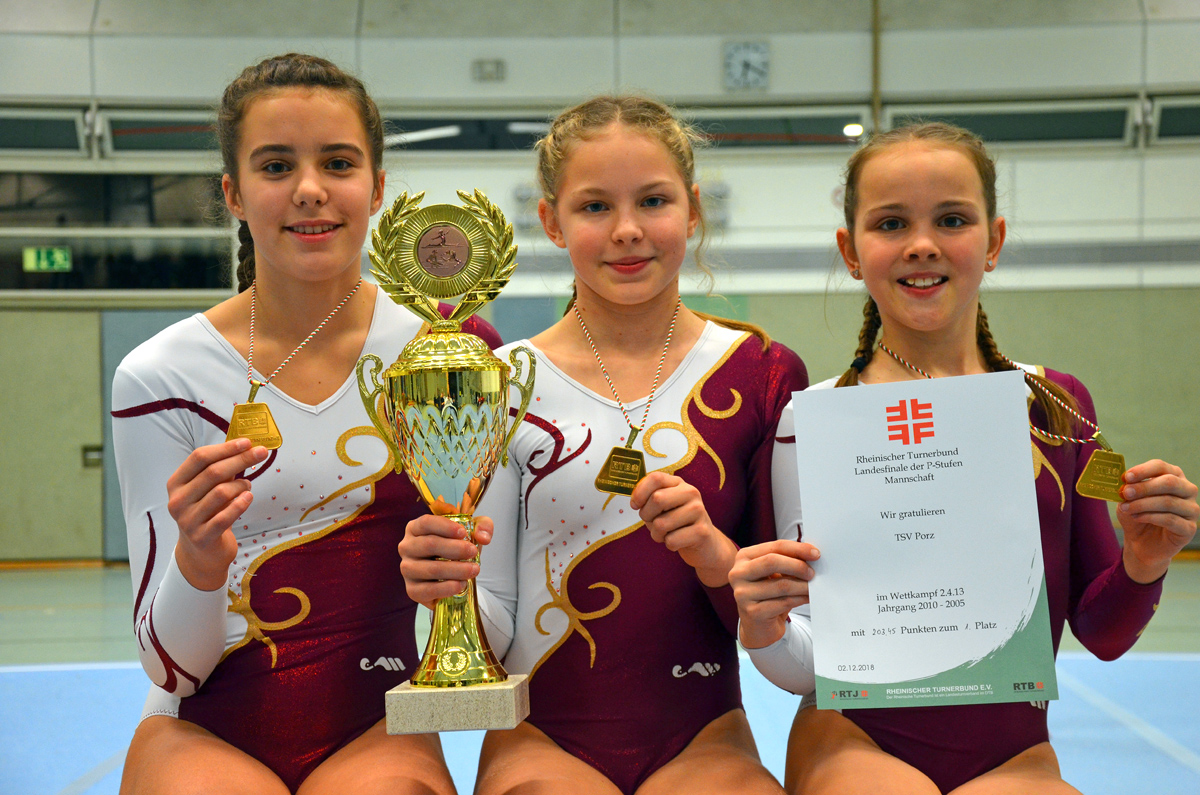Damit war das Wettkampfwochenende aber noch lange nicht vorbei, denn nun begann der Wettkampf der AK12-13. Für den TSV Port starteten in diesem Wettkampf nur drei Turnerinnen: Alina Bart, Sarah Adolphs und Lisa Liesenfeld. Auch hier, überraschenderweise, begann das Team am Barren. Da an diesem Gerät beim letzten Wettkampf einiges schief gelaufen war, war die Nervosität hoch. Alle drei Mädels konnten aber diesmal ihre Leistungen abrufen und zeigten schöne Übungen, die, obwohl im internen Mannschaftsvergleich seltsam bewertet, einen guten Start in den Wettkampf bedeuteten. Am Balken hieß es dann oben bleiben und die Mädchen meisterten dies mit Bravour. Keine bekam mehr als einen Punkt abgezogen und das Team konnte damit das zweite Gerät ebenfalls für sich entscheiden. Am Boden gestaltete sich der Wettkampf genauso erfreulich. Die Porzer Turnerinnen zeigten ausdrucksstarke und dynamische Übungen, die auch hier einen Vorsprung zu den restlichen Teams bedeuteten.