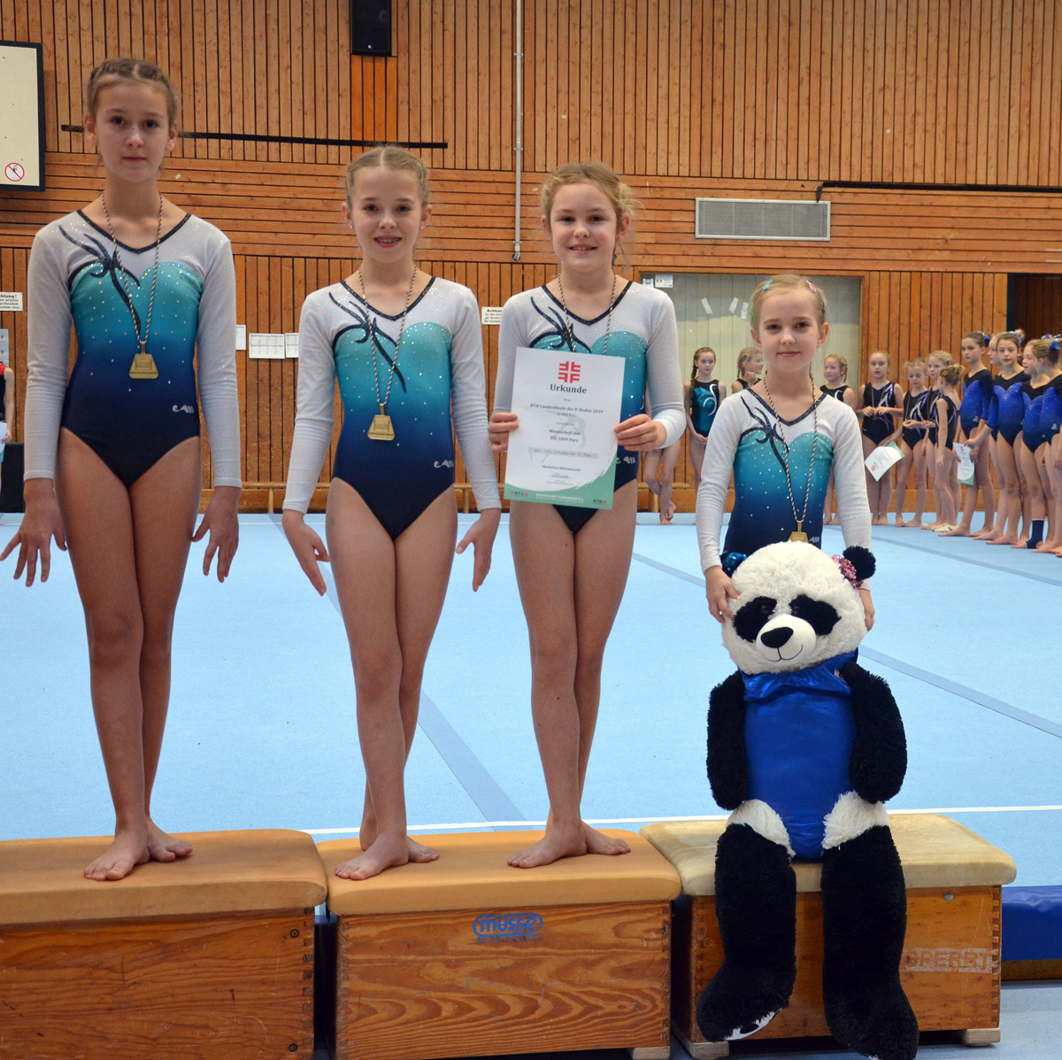 Auch sie schafften den Sprung auf Treppchen und erturnten sich die Bronzemedaille in ihrer Altersklasse. Celina entschied den Sprung und den Balken für sich und lag in der Einzelwertung auf Platz eins. Charlotte erturnte sich Platz 5 in der Einzelwertung.