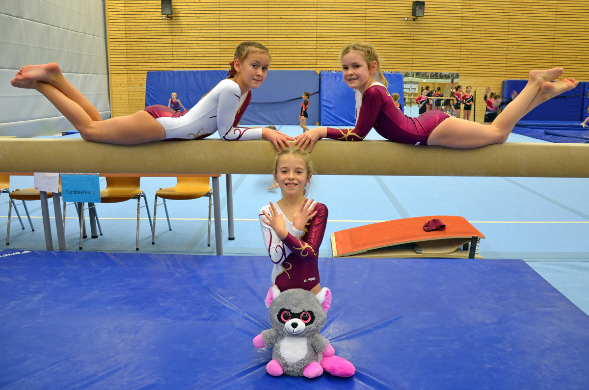 Charlotte Liesenfeld, Celina Neumann und Veronica Schäfer traten zum ersten Mal in einem Finale an und mussten wieder nur zu dritt alles geben. Sie bestritten ihre Übungen am Barren, Balken, Boden und Sprung und sammelten fleißig ihre Punkte. Bis zum Ende blieb es spannend, denn die Konkurrenz hing ihnen an den Fersen. Erst bei der Siegerehrung stieg die Nervosität nach jedem aufgerufenen Platz. Als es um die begehrten Treppchenplätze ging, begannen die Gesichter der Mädchen und auch die ihrer Vereinskameradinnen an zu strahlen. Und als dann die Vize-Meister des TuS Brauweiler aufgerufen wurden, war die Freude riesig. Sie hatten es geschafft: nach allen gewonnen Qualifikationen haben sie auch den Landesmeistertitel nach Porz gebracht.