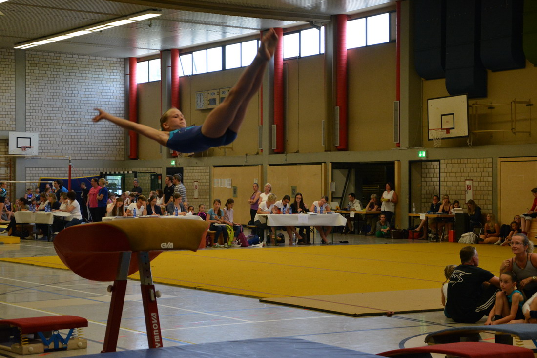 Heute blickt der TSV auf eine Veranstaltung zurück, die sich wirklich sehen lassen kann. 215 Turnerinnen aus dem ganzen Rheinischen Turngebiet reisten mit Eltern, Verwandten und Bekannten, dem Trainergespann und Kampfrichtern nach Zündorf, um die besten Mädchen des Landes im Pflichtbereich zu sehen. Die Halle war so gut besucht, dass den Helfern in der Cafeteria fast schwindelig wurde und in der Boutique überdurchschnittlich viele Turnanzüge verkauft wurden. Es gab tolle Übungen - ohne Verletzungen - zu sehen, einen reibungslosen Ablauf dank zahlreicher Einsatzkräfte und nur zufriedene Gäste, denen das sonnige Wetter Draußen nachher auch egal war.