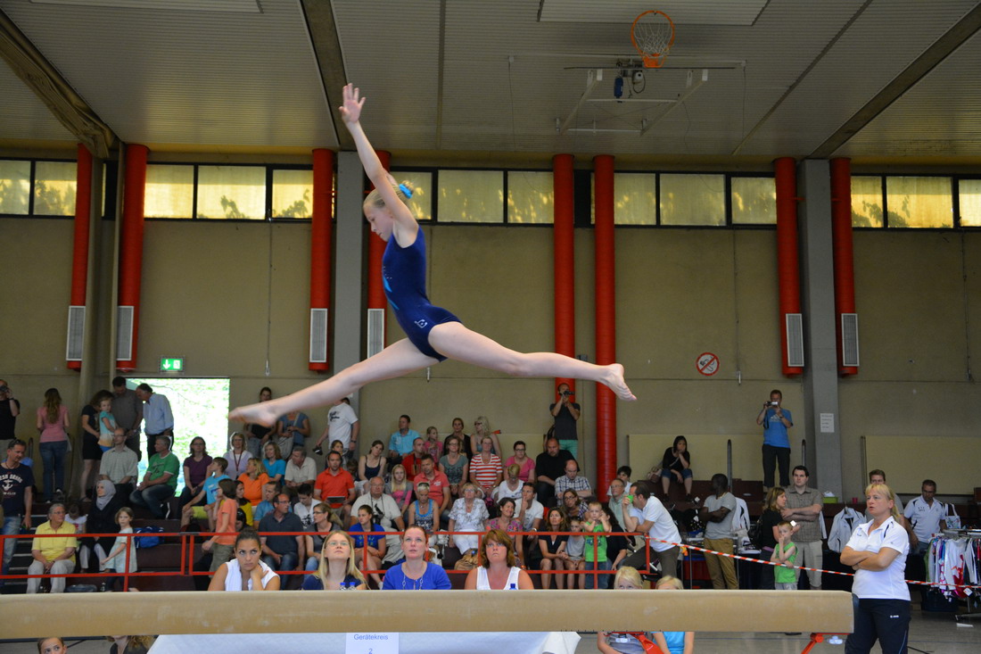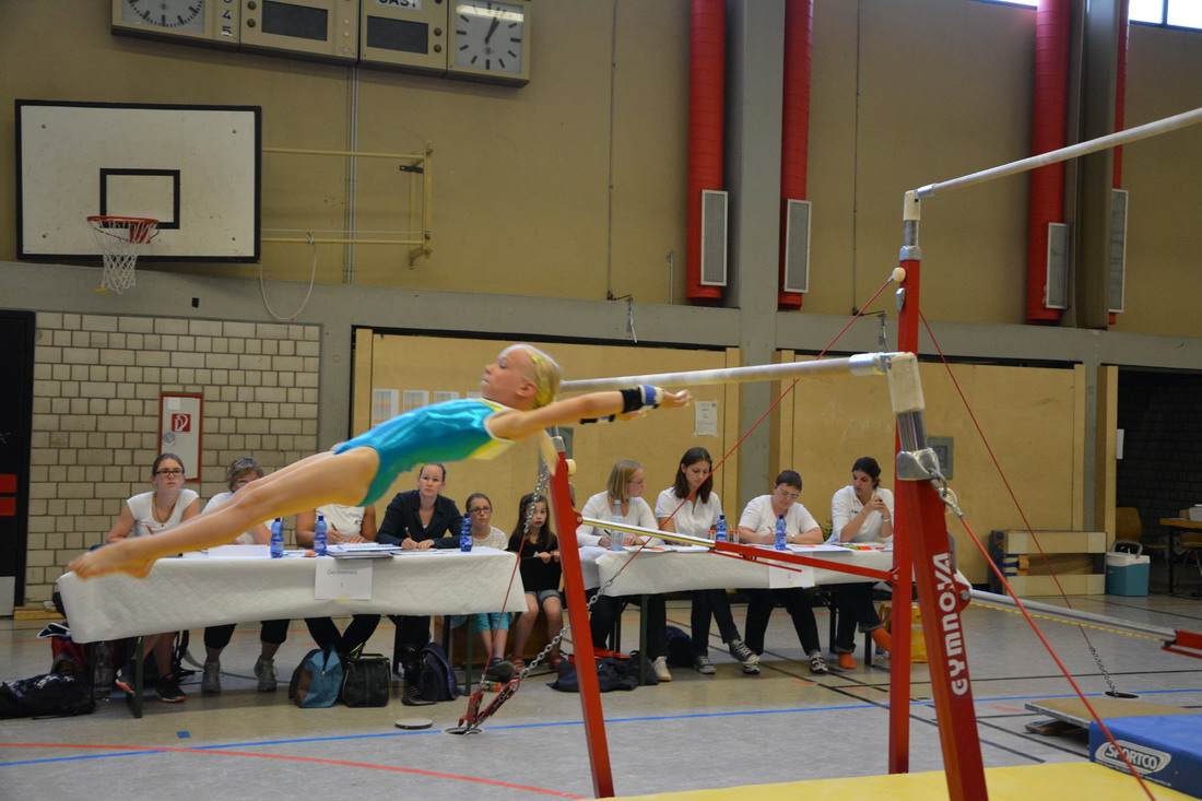 Wenn man gefragt wird, ob man für den Rheinischen Turnerbund das Landesfinale der P-Stufen im Gerätturnen Einzel veranstalten möchte und man weiß, dass der TSV Porz im Ausrichten von Wettkämpfen durchaus geübte Kräfte hat, ist eine gemeinschaftliche Zusage vom Verein schnell getroffen. Dass es aber eine derartige Mammutaufgabe am 14.07.2013 in Zündorf werden sollte, hatte Ende 2012 zunächst keiner geahnt. Ersten Schritt machten natürlich unsere Turnerinnen der Leistungsgruppe, die sich im Mai in Düren für das Landesfinale überhaupt erst qualifizieren mussten. Sie brachten ihre Leistungen im Turnverband Köln in 3 Altersklassen unter die ersten 10 Plätze und waren somit mit 9 Köpfen beim Wettkampf vor heimischer Kulisse im Schulzentrum Zündorf gesetzt. Einzig allein Pauline Friedrich, unsere Vorzeigeathletin, hatte in Düren Pech mit strengen Wertungen am Barren und einem Sturz vom Balken, was leider nur Platz 12. bedeutete. Der ganze Verein stimmte sich also auf den 14.07.2013 ein. Die Tagespresse hatte schon mehrfach Interesse gezeigt und Interviews geführt, während die Organisation rund um Cafeteria, Turngeräte, Tische und Bänke, zum Schluss noch wertvolle ehrenamtliche Helfer auf Hochtouren liefen. Die Erwartungen waren also hoch!