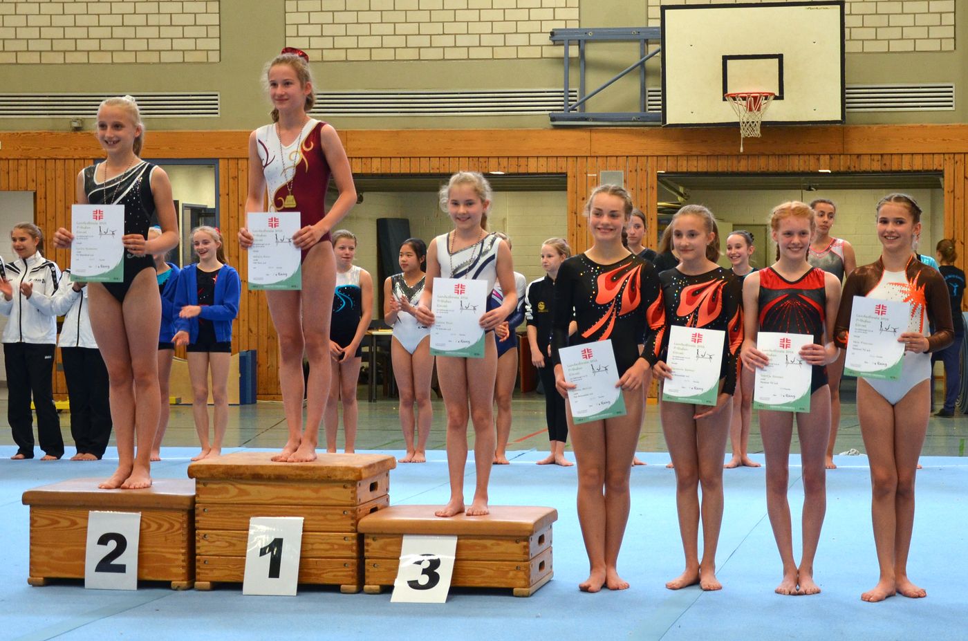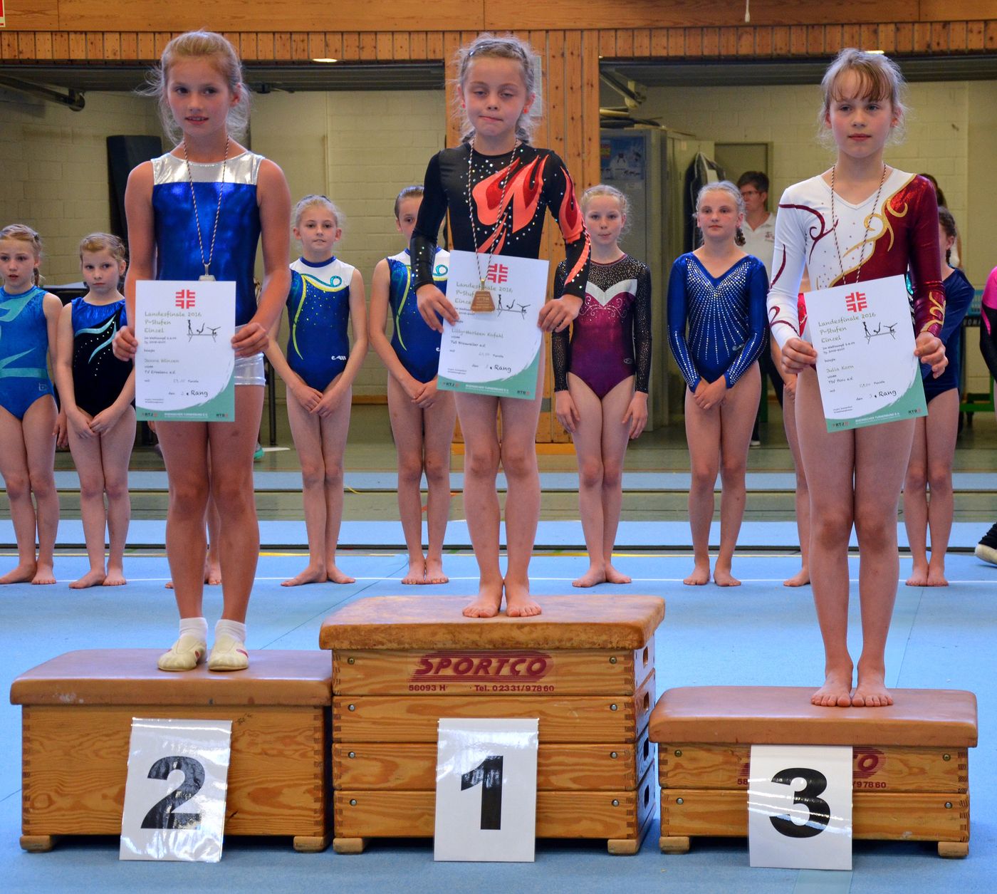 Am Sonntag, dem 03. Juli, richtete der Rheinische Turnerbund das Landesfinale der Pflichtübungen in Essen aus. Turnerinnen aus dem ganzen Rheinland, unterteilt in insgesamt sechs Wettkampfklassen, hatten ihre Mehrkämpfe zu bestreiten. Startberechtigt waren die jeweils zehn besten Turnerinnen aus den einzelnen Turnverbandsgruppen, so dass der Wettbewerb auf einem sehr hohen Niveau stattfand, der die hervorragende Leistung und die derzeitige Form der Porzer Turnerinnen unterstreicht. Unter den besten 217 rheinländischen Turnerinnen gingen 7 Mädchen aus Porz an den Start: Julia Korn, Malina Wendland, Sarah Adolphs, Angelina Kann, Maria Rundau, Natalie Kann, Sarah Shirvani Zadeh, Jessica Haelke und Kim Kopper.