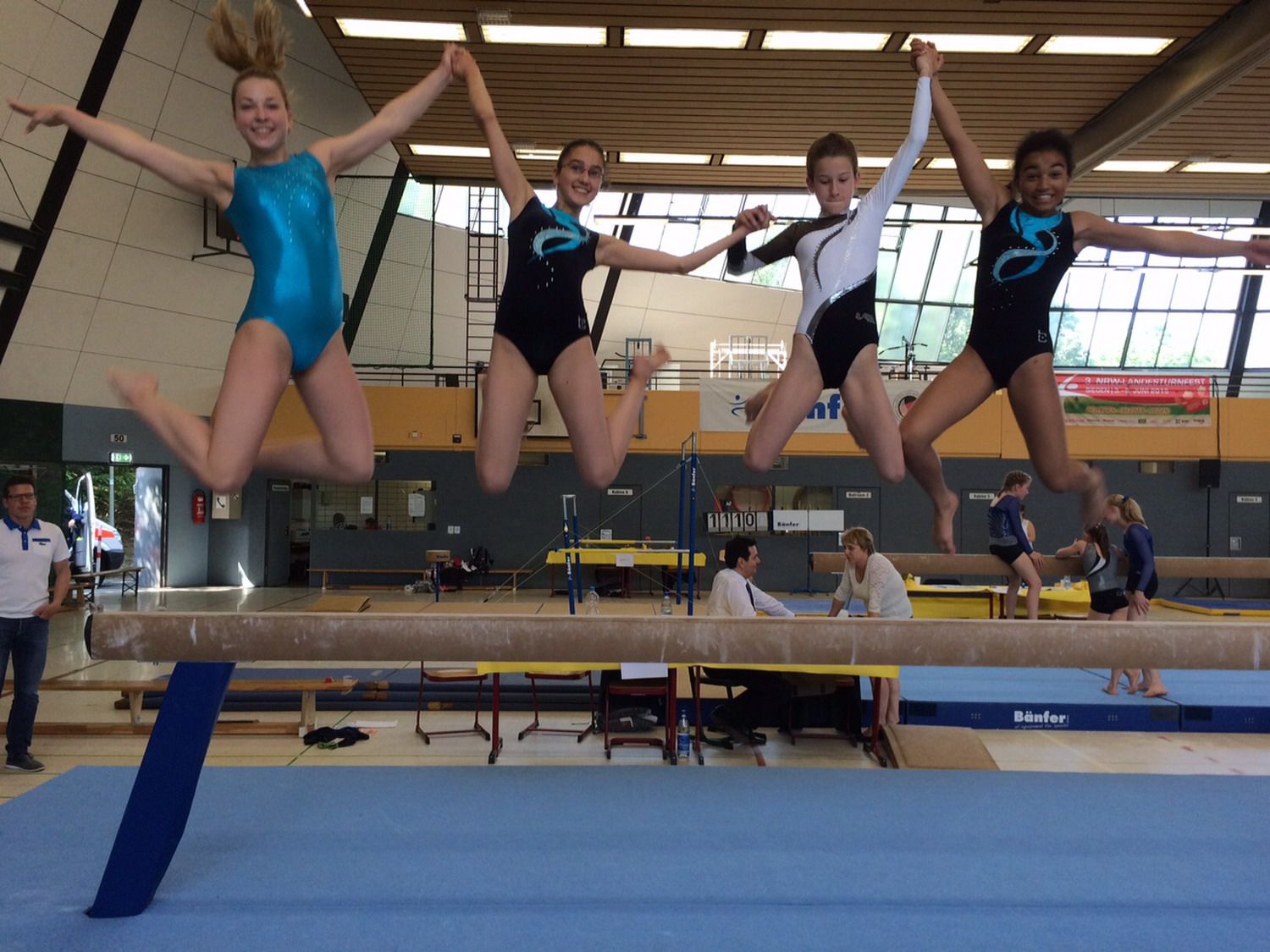 Alle vier Mädels kamen ohne Stürze oder unnötige Zwischenschwünge über den Barren. Hier konnten besonders Pauline und Natalie zeigen, dass Barren ihnen liegt. Cecile und Sarah zeigten ebenfalls ordentliche Übungen, mussten jedoch bei der Ausführung noch einiges an Abzügen hinnehmen.