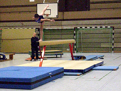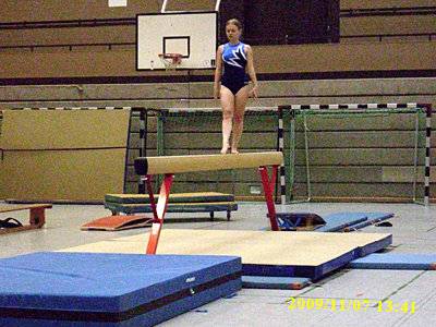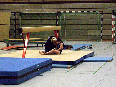 Nach dem guten Anfang ging das Porzer Team zum Balken. Obwohl beim Einturnen alles gut klappte, war diesmal Betül die Einzige, die keinen Sturz im Wettkampf zu verzeichnen hatte. Großen Applaus bekam Mahsa, nach ihrem Sturz trotz einiger Tränen ihre Übung bis zum Ende turnte. Man würde meinen, dass mit all diesen Stürzen die Chance auf eine Qualifikation verloren war. Die Mädchen gaben aber nicht auf und kämpften weiter. Am Boden zeichneten sich ihre Übungen durch die sehr schöne Choreographie und die ausdruckvolle Ausführung aus und wurden dafür auch mit hohen Noten belohnt. Es war noch nicht alles verloren! Vor dem letzten Gerät, dem Sprung, motivierte die Trainerin - Kalina Polanski - ihre Schützlinge zum letzten Kampf. Obwohl die jüngeren Mädchen den Überschlag über den Tisch noch nicht ganz gut beherrschen, sprangen sie die besten Sprünge, die sie konnten. Dank eines sehr guten Sprungs von Karolina - sie bekam 9,1 Pkt. in der B-Wertung, gelang es der Mannschaft die Qualifikation doch noch zu schaffen!
