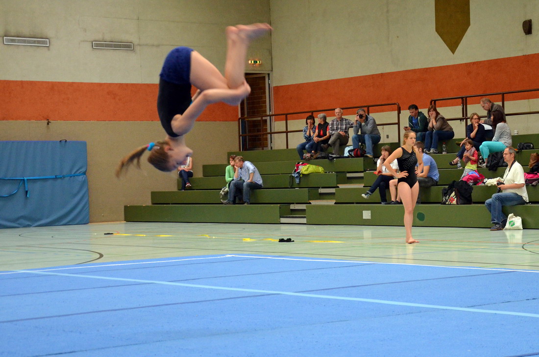 Die Bodenübungen, die von den Porzer Turnerinnen gezeigt wurden, zeichneten sich durch ihre schöne Choreografie aus und wurden mit Elan und Eleganz geturnt. Leider beinhalten sie noch nicht ganz so viele hochwertige Elemente und durch die niedrige D-Werte (Schwierigkeitsweret) brachten sie den Mädchen nur den 5. Rang. Die beste Bodenturnerin im Team war Pauline, die die viertbeste Note des Wettkampfs für ihre Darbietung bekam.