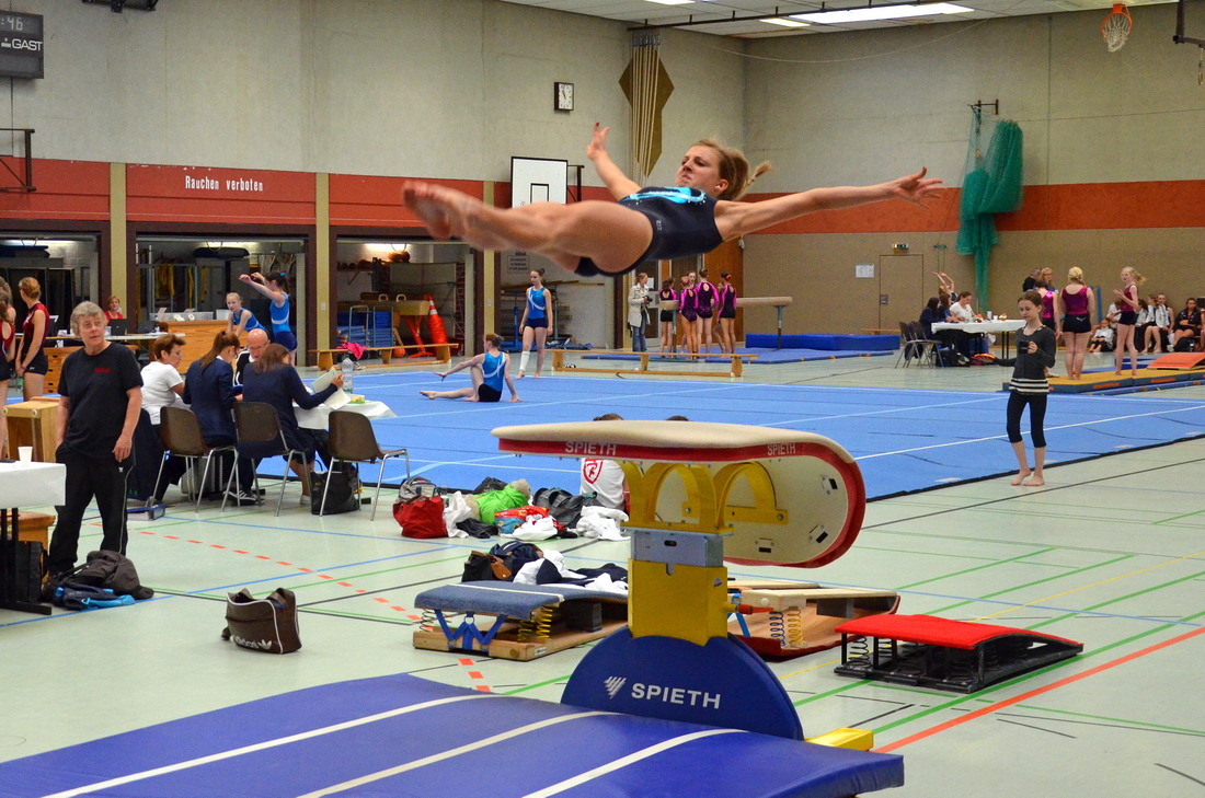 Am Sprung wollte beim Einturnen der Anlauf bei der einen oder anderen TSV Turnerin nicht klappen, sodass es nicht sicher war, ob der Sprung im Wettkampf überhaupt gelingt. Letztendlich konzentrierten sich alle Sportlerinnen so weit, dass jede einen ordentlichen Sprung zeigte. Obwohl die Mädchen hier nicht ihre gewohnte Leistung zeigten, erreichte die Mannschaft am Sprung den 2. Rang.