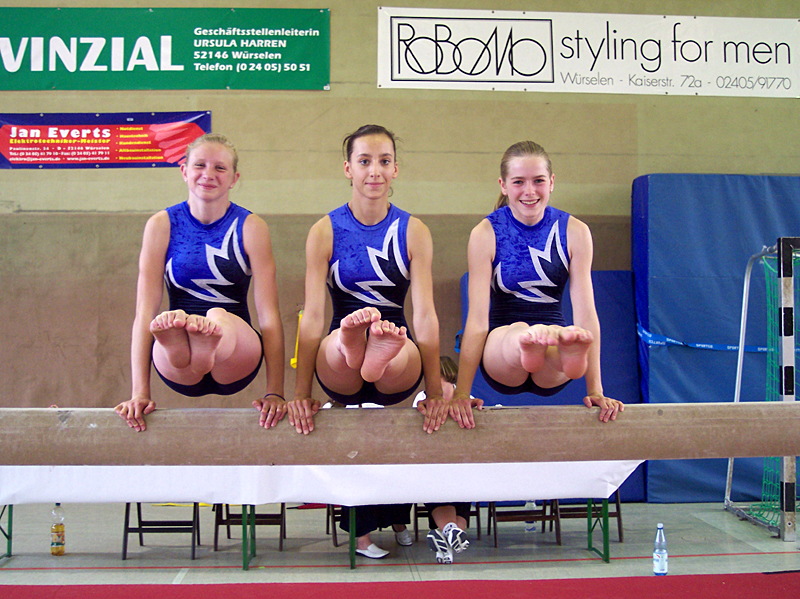 Am Samstag turnte die Verbandsliga-Mannschaft. Leider konnten an diesem Tag nicht alle Mädchen am Wettkampf teilnehmen, sodass nur drei von fünf Teammitgliedern an die Geräte gingen. Jedes Mädchen musste ihr Bestens zeigen. Geturnt wurden die Kürübungen der Klasse 2. Nachdem im ersten Wettkampf die Übungen noch ganz frisch und unsicher geturnt wurden, gelangen viele Elemente diesmal viel besser. Unter den besten zehn fand sich Lena Woizenko am Balken (Platz 3 mit 11,95 Punkten) und Michelle Blum am Balken (Platz 7 mit 11,3 Punkten) und am Sprung (Platz 10 mit 11,6 Punkten). Mit Isabel Klein als der dritten Turnerin in der Mannschaft belegten sie den siebten Platz. In der Rankingtabelle steht diese Mannschaft weiterhin auf der achten Position.