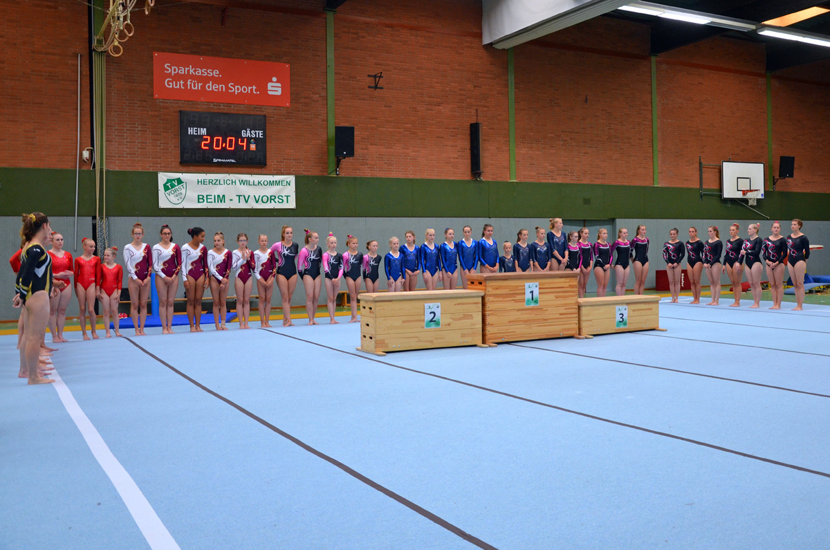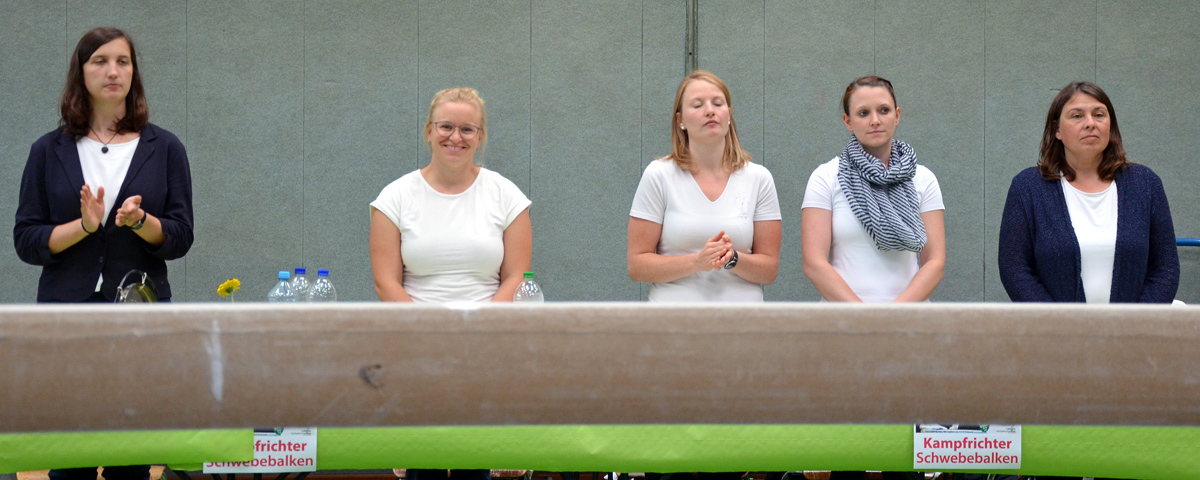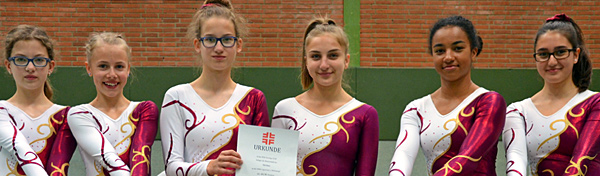Am 24.6. hieß es für die 1. Mannschaft des TSV Porz, in der NRW-Liga ihren holprigen Start vom ersten Wettkampf wieder zu richten. Die Mannschaft mit Malina Wendland, Angelina Kann, Maria Rundau, Natalie Kann, Cecile Weissenburger und Sarah Shirvani Zadeh startete ihren Wettkampf am Boden. Hier wurden ihre schönen Übungen weitaus angemessener als beim letzten Wettkampf bewertet, was der Mannschaft an diesem Gerät den dritten Rang einbrachte, und so blieb die Stimmung innerhalb der Mannschaft positiv. Weiter ging es mit Sprung und Barren, wo sich die Mannschaft im Mittelfeld platzieren konnte. Mit motivierenden Worten der Trainerin Kalina Polanski ging es zum letzten Gerät, dem Balken. Obwohl sie hier leider zwei Stürze in Kauf nehmen mussten, bescherten die hohen Ausganswerte und die saubere Ausführung ihnen hier den dritten Rang. Nun hieß es abwarten. Das Ziel war, einen der mittleren Plätze zu erreichen. So war die Freude und tatsächlich auch die Überraschung riesig, als es bei der Siegerehrung auf das Treppchen mit der 2 ging. Alle Mannschaften im Mittelfeld lagen sehr eng beieinander. Einige Teams waren durch fehlende Turnerinnen geschwächt, aber nichtsdestotrotz gratulieren wir den Mädchen und freuen uns, dass das Ziel Klassenerhalt wieder in greifbare Nähe gerückt ist. Die Mannschaft steht in der Gesamtwertung nun auf einem guten vierten Platz.