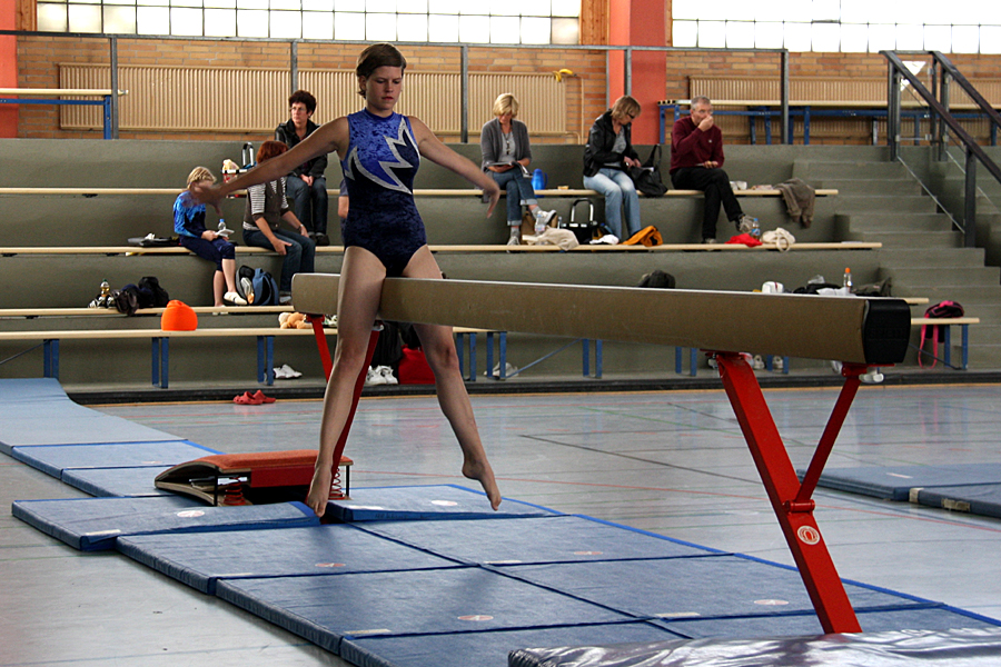 Nachdem der zweite Wettkampf für diese Mannschaft sehr gelungen gewesen war, präsentierten sich die Mädchen diesmal nicht so souverän. Direkt am ersten Gerät - am Barren - turnten sie die Übungen unter ihrem Niveau und verloren gute 4 Punkten auf die führenden Mannschaften. Am Balken war die Leistung schon viel besser und hier landete das Team auf dem dritten Rang mit einem sehr kleinen Rückstand zu den zwei besseren Mannschaften. Anne wurde in der Einzelwertung an diesem Gerät ebenso Dritte. Aber der fehlende Einsatz von Anne und Lena am Boden und am Sprung verursachte, dass die Turnerinnen aus Porz trotz der Bemühungen der anderen Mitglieder der Mannschaft (Inga belegte am Boden sogar den dritten Platz), in diesem Wettkampf nur auf dem sechsten Platz landeten. Insgesamt platzierte sich das Team des TSV in der Saison 2009 auf dem fünften Rang, was eine gute Verbesserung zu der vorjährigen Saison war.