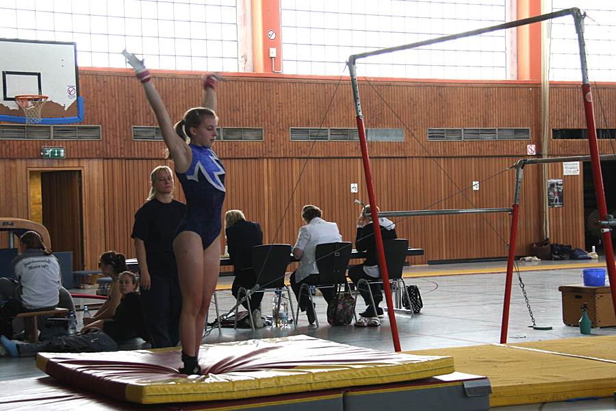 Am Sonntag ging die Landesliga 1-Mannschaft an die Geräte (Anne Klein, Isabel Klein, Inga Köller, Lena Woizenko, Michelle Blum, Ronja Gesell, Sandra Höfermann und Mira Daglis). Die Trainerinnen - Kalina und Karolina Polanski so wie Eszter Ezsias rechneten nicht mit guten Ergebnissen, da im Team nach den Sommerferien eine regelrechte "Plage" von Verletzungen und Krankheiten herrschte, sodass nicht alle Turnerinnen voll einsetzbar waren.