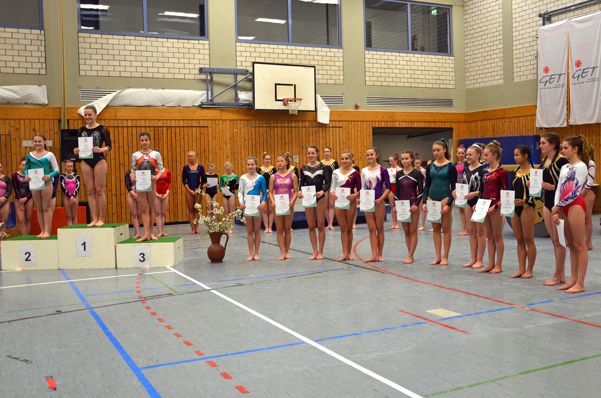 Malina lieferte sich an den ersten beiden Geräten Balken und Boden ein Kopf an Kopf Rennen mit einer sehr starken Troisdorfer Turnerin. Musste sich jedoch nach Sprung und Barren deutlich mit 2 Punkten Rückstand geschlagen geben. Nichtsdestotrotz kann sie sich über den 2. Platz sehr freuen, denn so hat sie sich direkt zum Deutschland Cup am 4. Mai in Bayern qualifiziert.
