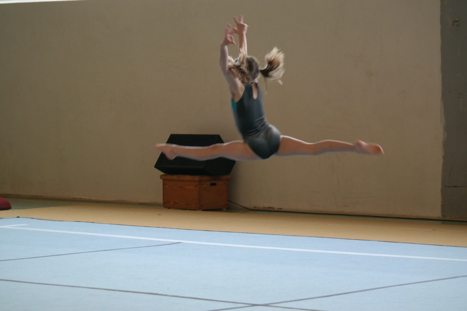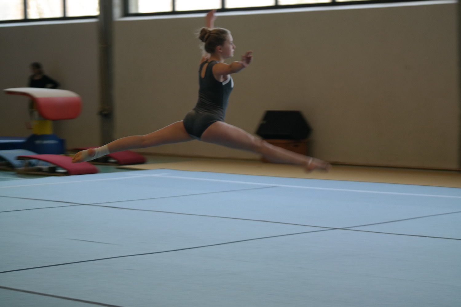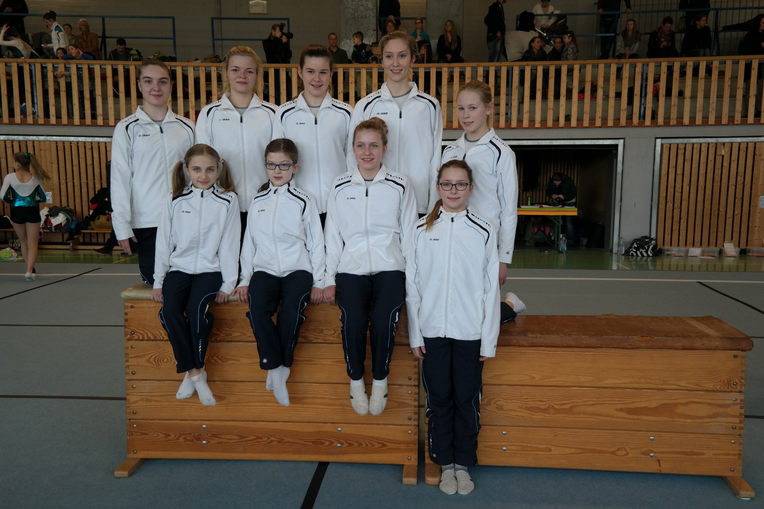 Bei diesem ersten Wettkampf startete die Mannschaft am Sprung. Kim, Anja, Meret und Serenay zeigten gelungene Sprünge und sammelten wichtige Punkte für eine gute Position im Wettkampf. Nach olympischer Reihenfolge ging es anschließend zum Barren. Hier turnten Anja, Maria, Angelina und Kim. Im Gegensatz zur letzten Saison schaffte die Mannschaft es, sich mit sauberen Übungen die zweithöchste Mannschaftswertung an diesem Gerät zu erturnen. Zur Freude aller, führten die Turnerinnen des TSV Porz nach zwei Geräten. Hoch motiviert, zumindest einen Treppchenplatz zu halten, gingen Maria, Angelina, Kim und Meret an den Balken. Maria zeigte eine saubere und ansprechende Übung und erhielt die zweitbeste Tageswertung. Als letztes ging es zum Boden. Kim turnte zuerst und zeigte bis auf kleine technische Unsicherheiten beim Flick, eine saubere Bodenkür. Als nächstes ging Angelina an den Start. Auch sie sicherte mit 12.60 wichtige Punkte für die Mannschaftswertung. Nun war Meret an der Reihe, die zum ersten Mal in einem Wettkampf einen Flick zeigte. Den Abschluss machte Maria, mit einer technisch und künstlerisch sehr sauberen Übung, für die sie die Tageshöchstwertung der LL 4 erhielt.