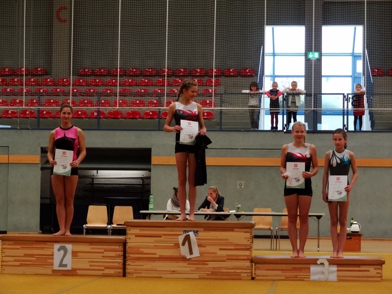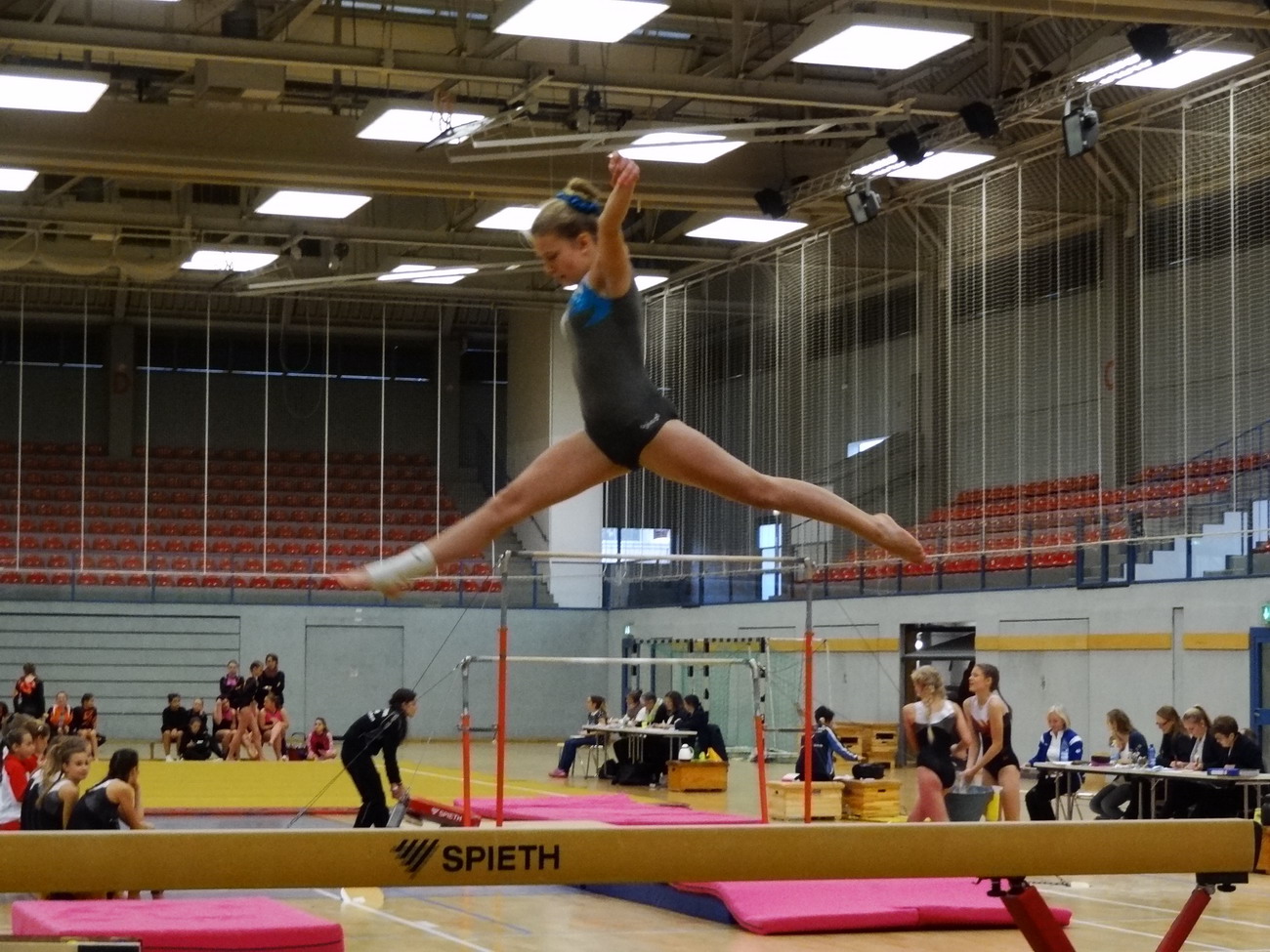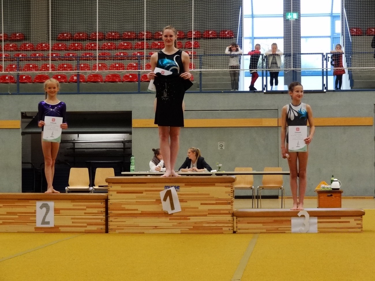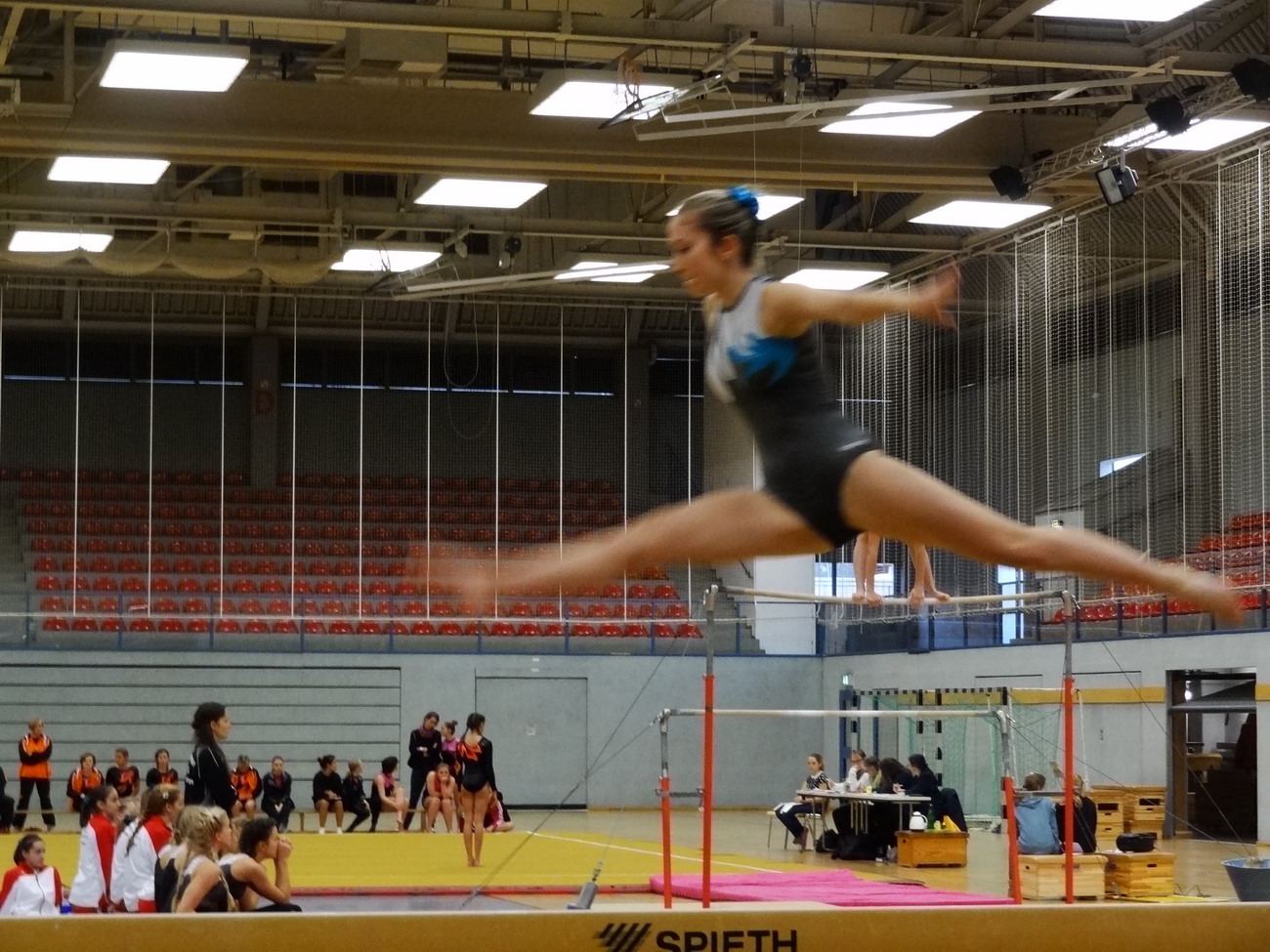 Beim letzten Wettkampf turnten Kim Kopper, Meret Herrenbrück, Julia Fuchs, Natalie Kann, Maria Moisseyenko, Anja Woizenko und Serany Karas. Aber auch die restlichen Mannschaftsmitglieder (Olivia Kalscheuer, Marlen Dietze und Jasmin Rahier) waren mitgekommen, um die Turnerinnen anzufeuern und mental zu unterstützen. Bei diesem letzten Wettkampf startete die Mannschaft am Barren. Kim, Anja, Maria und Natalie turnten ihre Übungen sauber durch und erhielten gute Punktzahlen. Trotzdem muss für die neue Saison weiter an den Übungen gefeilt werden, um mit den anderen Mannschaften mithalten zu können. Als nächstes ging es an den Balken. Hier traten Meret, Natalie, Kim und Maria an. Bei einigen war die Aufregung groß, aber alle konnten ihre Übungen ohne Sturz und größere Wackler durchturnen. Am dritten Gerät, dem Boden, turnten Kim, Julia, Natalie und Maria. Leider schlichen sich kleine Unsauberheiten in, die wertvolle Punkte kosteten und die Mannschaft musste somit am Sprung noch einmal alle verbleibenden Kräfte mobilisieren um diesen Rückstand eventuell aufholen zu können. Kim, Meret, Serenay und Anja gaben ihr Bestes und schafften es damit an diesem Tag, das beste Mannschaftsergebnis am Sprung zu erturnen. Nun wartete man gespannt auf die Siegerehrung und war überrascht und erfreut zugleich. Zwar erreichte die Mannschaft bei diesem 3. Liga WK der Saison "nur" den 5. Platz, konnte sich aber dafür in der Gesamtwertung aller drei Wettkämpfe auf Rang 4 platzieren. Außerdem erzielten einige Mädchen erfreuliche Ergebnisse in den Saisoneinzelwertungen. So erreichte Natalie am Barren und Balken den 3. Platz in der Geräteeinzelwertung. Kim konnte sich mit 143,95 Punkten den 3. Platz in der Mehrkampfwertung sichern. Herzlichen Glückwunsch allen Turnerinnen zu diesen Erfolgen.