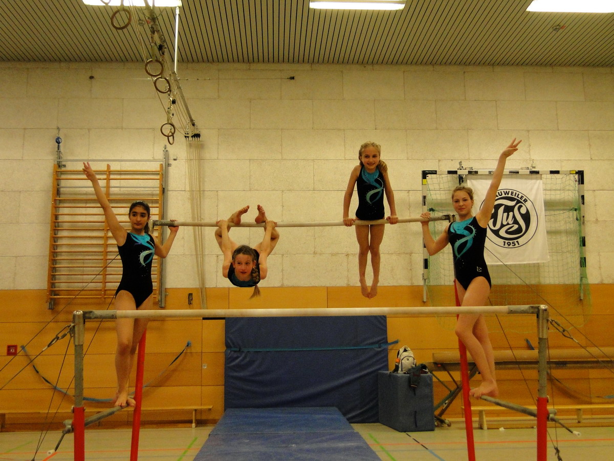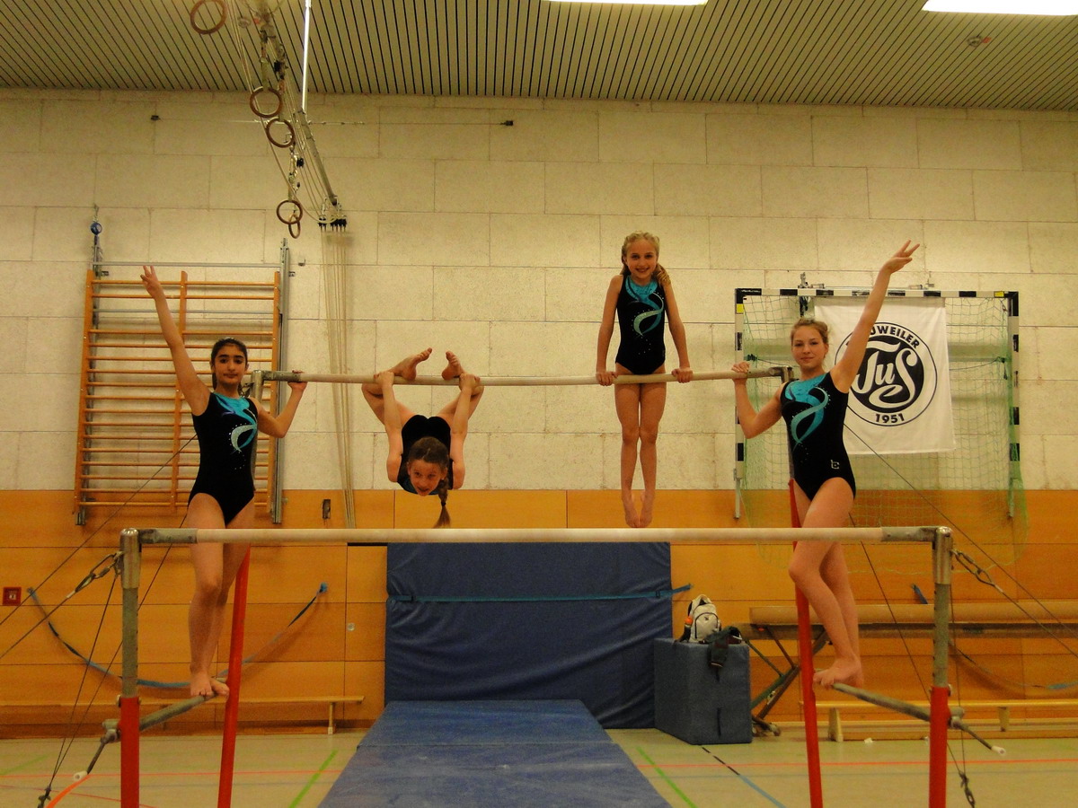 Am Barren konnten die Mädels dann zeigen, was in ihnen steckt. Maria und Natalie zeigten hier zwei sehr gute P7, die mit 16,20 und 16,50 Punkten, den zwei Höchst- und einzigen 16er Wertungen an diesem Gerät belohnt wurden. Da die Langhangkippe noch nicht klappt und auch das Aufhocken noch sehr unsicher ist, zeigten Tanin und Olivia eine P6, die sie gut durchturnen konnten.