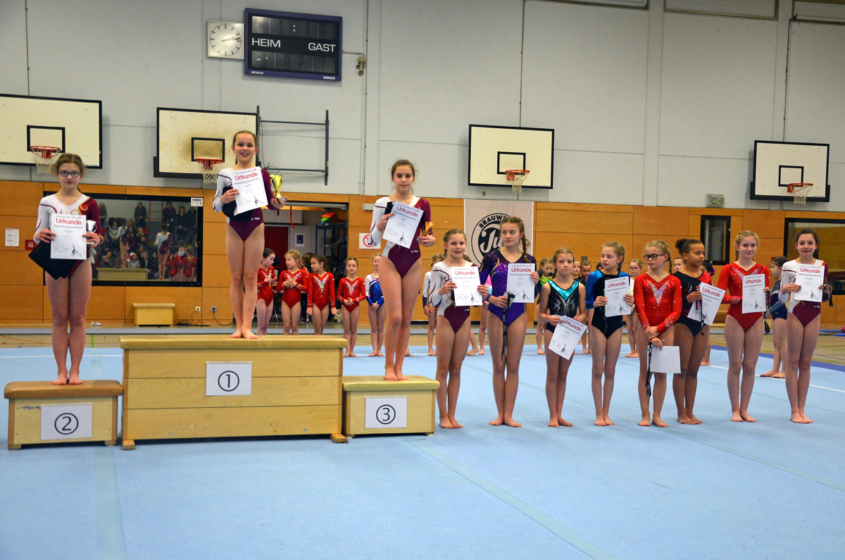 Alle Turnerinnen machten ihre Sache so gut, so dass sich Kim in ihrer Altersklasse den Regionalmeister-Titel sichern konnte und Natalie und Maria sich über die Treppchenplätze 2 und 3 freuen durften.