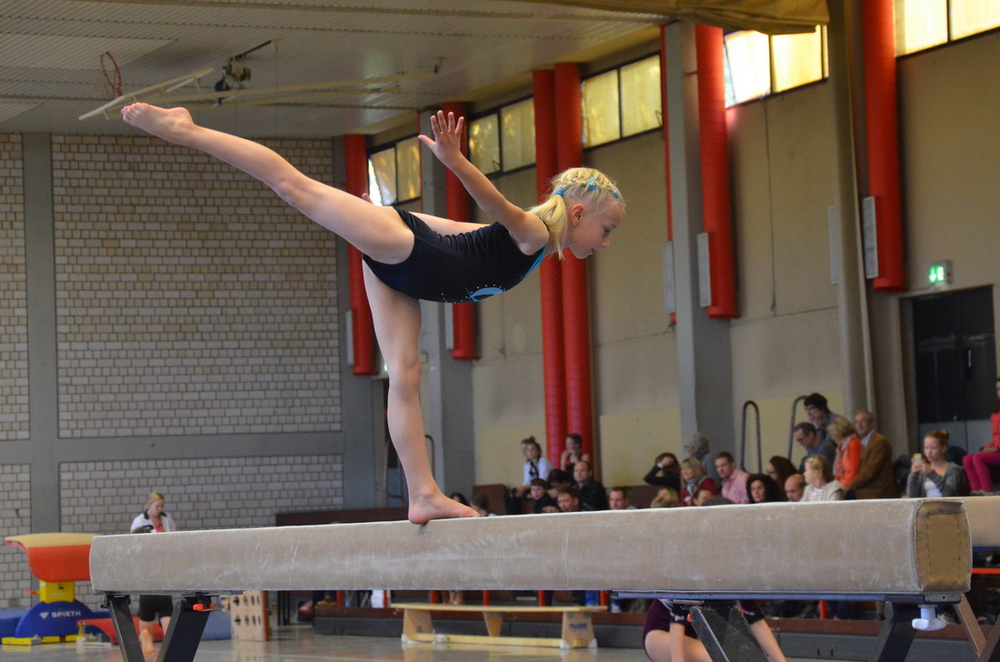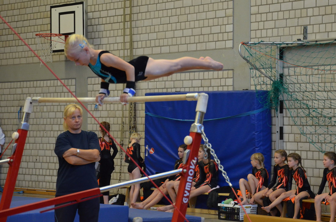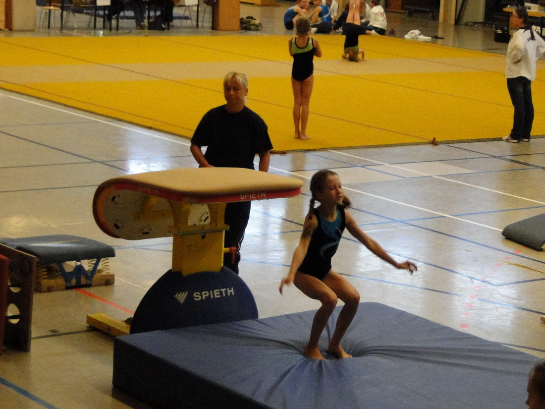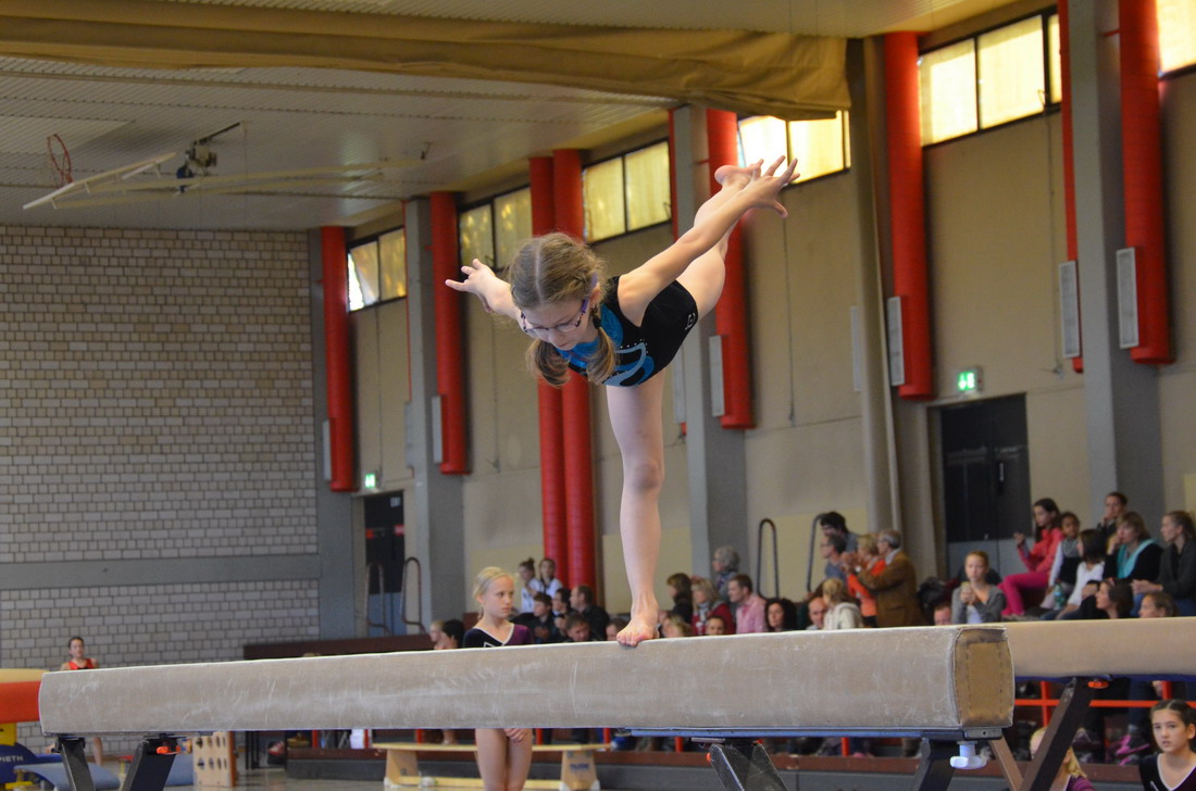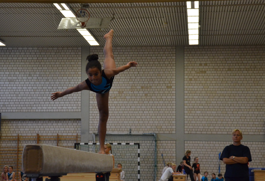 Den Anfang machten die Jüngsten im Jahrgang 2004/2005. Maria Moisseyenko, Angelina Kann und Annika Mundt wussten, dass sie sich keinen Patzer erlauben durften, um Chancen auf einen vorderen Podestplatz und damit die Qualifikation zur nächsten Runde auf Verbandsebene zu haben, denn alle Wertungen würden in das Endergebnis einfließen. Entsprechend nervös, aber auch motiviert gingen sie zu Werke und kamen tatsächlich ohne größere Fehler und Unsicherheiten durch. Annika und Angelina teilten sich die Tageshöchstnoten, indem jede an 2 Geräten die beste Wertung erzielte, jedes Mal ganz dicht gefolgt von Maria. So wurde das Mini-Team mit deutlichem Abstand vor dem TV Rodenkirchen und dem TuS Brauweiler Regionalmeister.