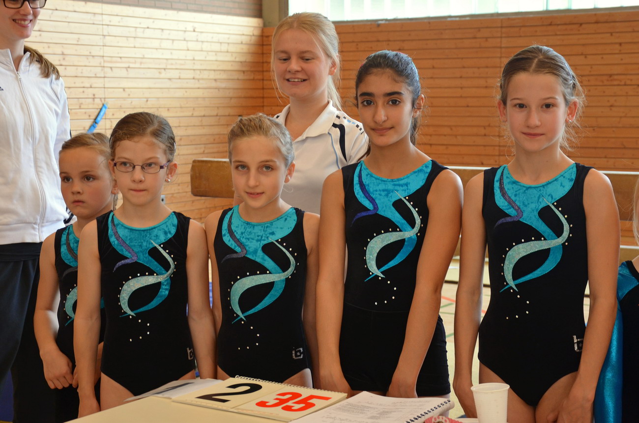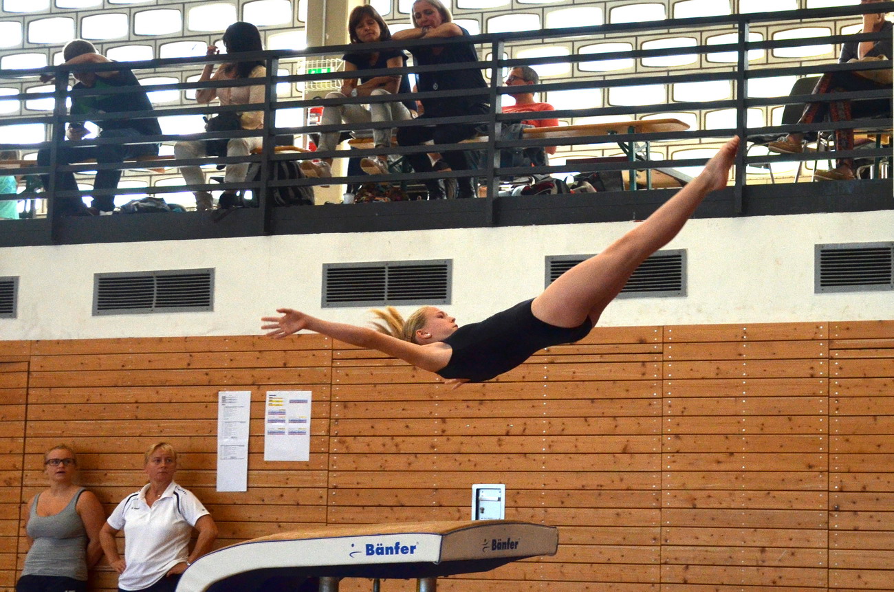 Am Morgen ging die erste Porzer Mannschaft in der altersoffenen Altersklasse an den Start. In dieser Mannschaft starteten Kim Kopper (1992), Jasmin Rahier (1992), Julia Fuchs (2000), Meret Herrenbrück (2001), Olivia Kalscheuer (2003) und Serenay Karas (1999). Für die Mädchen begann der Wettkampf am Boden. Kim startete als erste Turnerin für die Porzer und turnte eine saubere Übung. Auch Jasmin, Serenay und Olivia zeigten ansprechende Übungen. Am nächsten Gerät, dem Sprung, erhielt Kim für ihren Überschlag 16,5 von 17 möglichen Punkten. Auch Serenay bekam eine 16er Wertung. Julia erturnte sich 15,2 Punkte, Meret 15,5. Als nächstes Gerät war der Barren an der Reihe. Hier starteten Kim, Jasmin, Meret und Serenay. Alle turnten ihre Übungen solide durch und erhielten gute Punktzahlen. Zum Abschluss des Wettkampfs mussten die Mädchen ihr Können am Balken zeigen. Dieses Mal turnten Julia, Kim, Serenay und Olivia. Alle Mädchen gaben ihr Bestes und turnten ihre Übungen sauber und konzentriert durch. Leider reichte es am Schluss dann doch nur für den 6. Platz. Trotzdem fuhren die Mädchen zufrieden über ihre persönlichen Leistungen nach Hause.