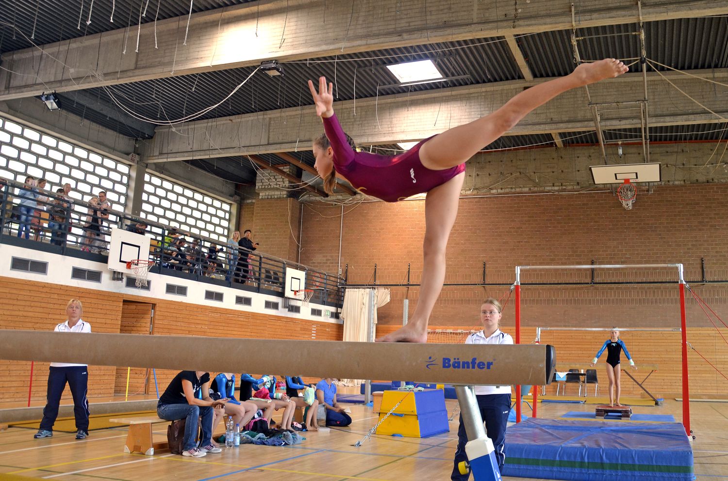 Die ältesten und die jüngsten Turnerinnen aus Porz turnten in einem Durchgang. Das TSV-Team der Altersklasse “15 Jahre und jünger” gewann seinen Wettkampf souverän, mit einem Vorsprung von 9,1 Punkten zur zweitplatzierten Mannschaft aus Kierdorf. Die Turnerinnen (Jessica Haelke, Sarah Shirvani Zadeh, Cecile Weissenburger, Natalie Kann und Maria Rundau) waren die beste Mannschaft an allen vier Geräten. Am Sprung zeigte Cecile den besten “Yamashita” der Konkurrenz, Sarahs Sprung war der Zweitbeste. Am Stufenbarren war die Dominanz der Porzer Sportlerinnen am deutlichsten zu sehen. Die beste Turnerin an diesem Gerät war Natalie, gefolgt von Maria, Cecile und Jessica, die die Plätze 2 bis 4 belegten. Keine der Turnerinnen machte einen Fehler am Balken, hier siegte Jessica vor Natalie. Und am letzten Gerät teilten sich Jessica und Cecile den ersten Platz, da sie die gleiche Note für ihre Darbietungen bekamen.