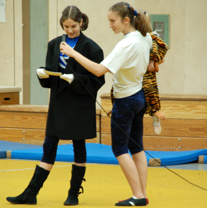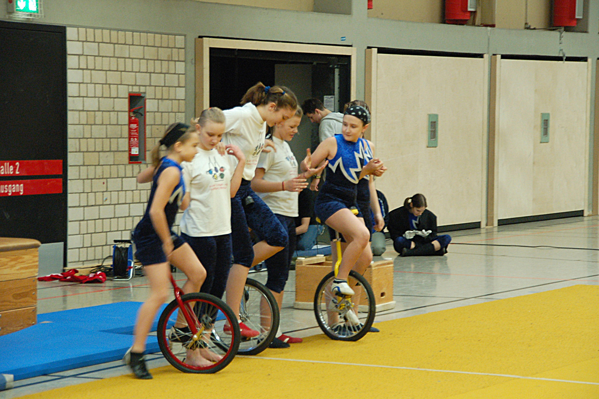 Wie in jedem Zirkus war auch bei uns ein Direktor vorhanden (gespielt von Denise Kubatz), der die ganze Show leitete. Neben den Darstellungen der Turngruppen, zeigten auch einige Mädchen eine kurze Einrad-Aufführung. Hier konnten die Zuschauer sehen: Kim Kopper, Carolin Zemelka, Jelena Petkovic und Liv Jahns.
