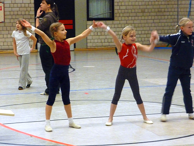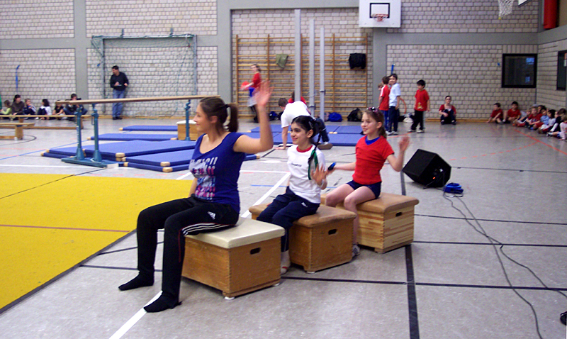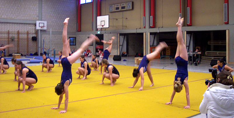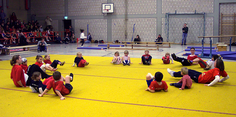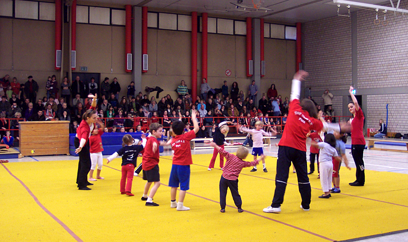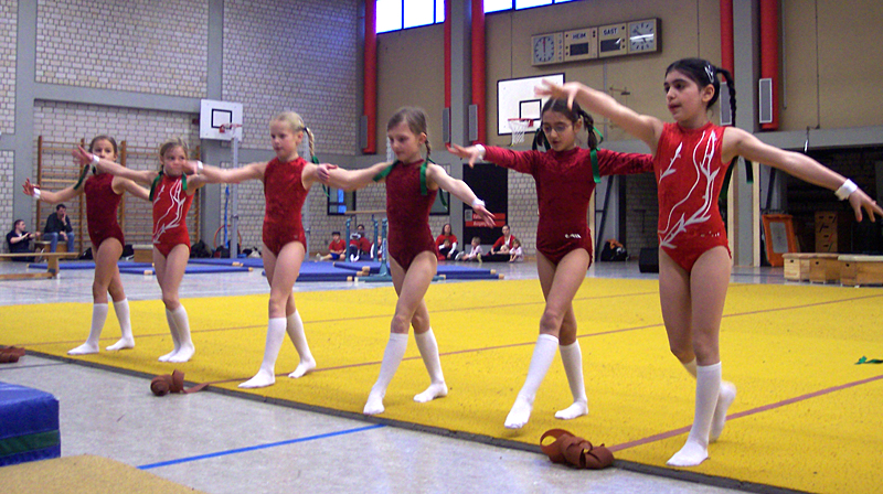 ..."Ach, irgendwie macht uns das Turnen gar keinen Spaß mehr. Es wird immer langweiliger. Wir interessieren uns im Moment viel mehr für das Reisen"... - so sprach die kleine Lisa zu Beginn des Theaterstücks am Sonntag, dem 07.02.2010 in der Halle des Zündorfer Schulzentrums. Die kleine Geschichte handelte von der Reise zweier Mädchen und ihrer Mutter durch verschiedene europäische Länder. Während des Aufenthalts in dem jeweiligen Staat informierte die Mutter sie über die Besonderheiten des Landes und sie beobachteten auch viele interessante turnerische Programme, sodass die beiden Mädchen am Ende wieder Spaß am Turnen fanden.