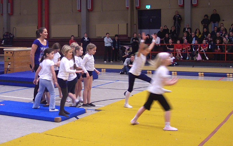 Und wieder führte die Mutter ihre Töchter in den Norden von Europa. Das Trio besuchte diesmal Finnland mit seiner Hauptstadt Helsinki. Die Turnerinnen aus der M1-Gruppe (unter Leitung von Andrea Schmidt) präsentierten eine Bodenvorführung. Die Mädchen stellten eine ansprechende Übung aus gymnastischen und akrobatischen Teilen zusammen.