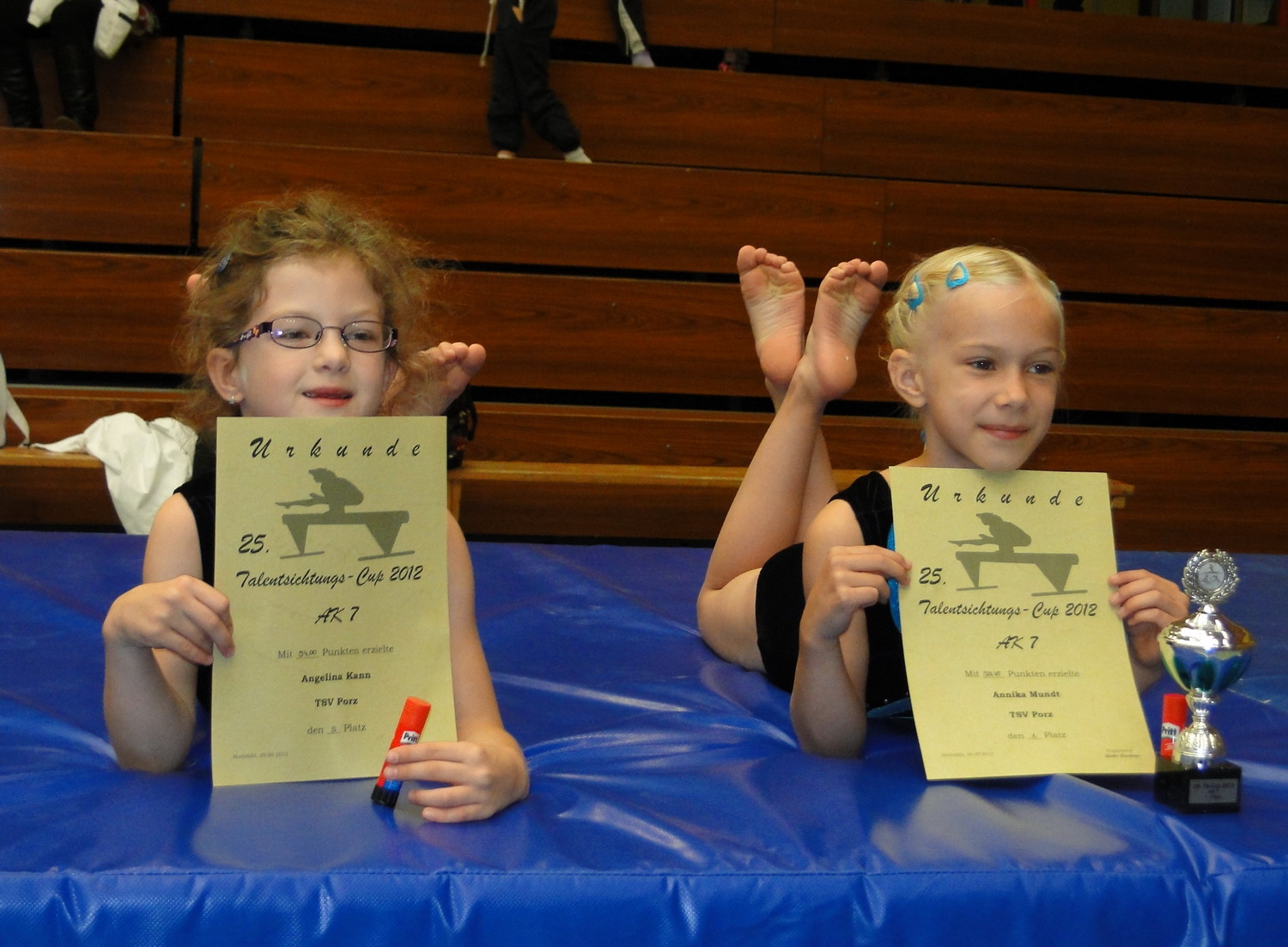 Am 29.09.2012 fand der 25. Talentsichtungs-Cup in Hochdahl statt. Es waren 5 Landesturnverbände aus Deutschland mit insgesamt 29 Turnerinnen vertreten. Auch zwei Mädchen des TSV Porz nahmen dort am Wettkampf der Alterklasse 7 teil.