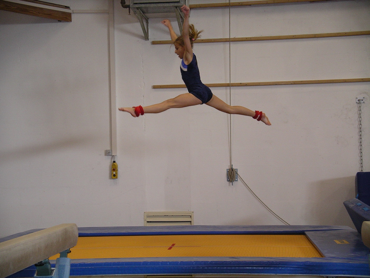 Wir hatten jeden Tag Training. Dort habe ich Salto rückwärts auf dem Trampolin gemacht.