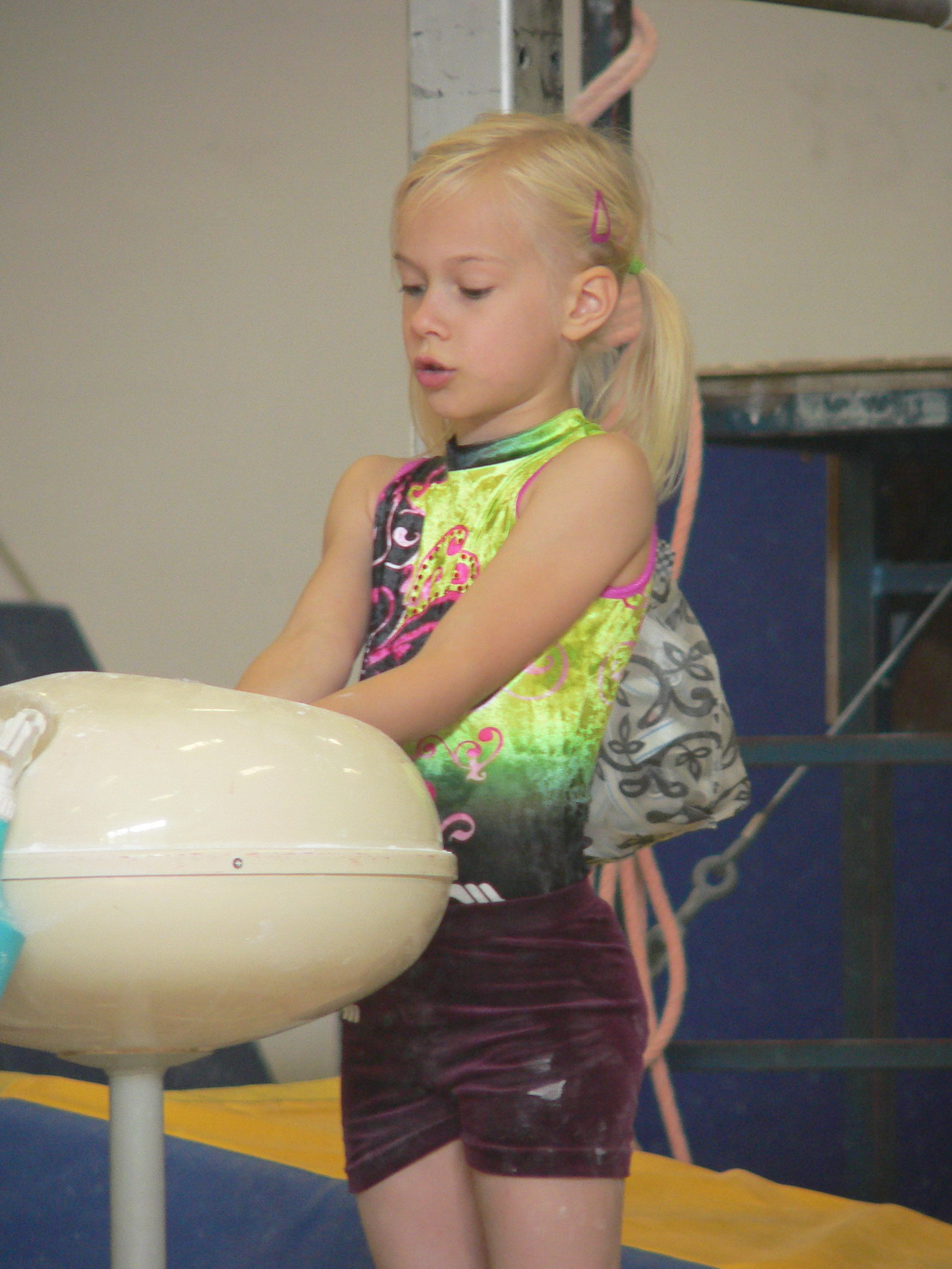Ich habe neue Turnelemente ausprobiert und auch geschafft, zum Beispiel Minikelli alleine auf dem kleinen Balken, Radwende Salto rückwärts und Salto vorwärts auf dem Boden.