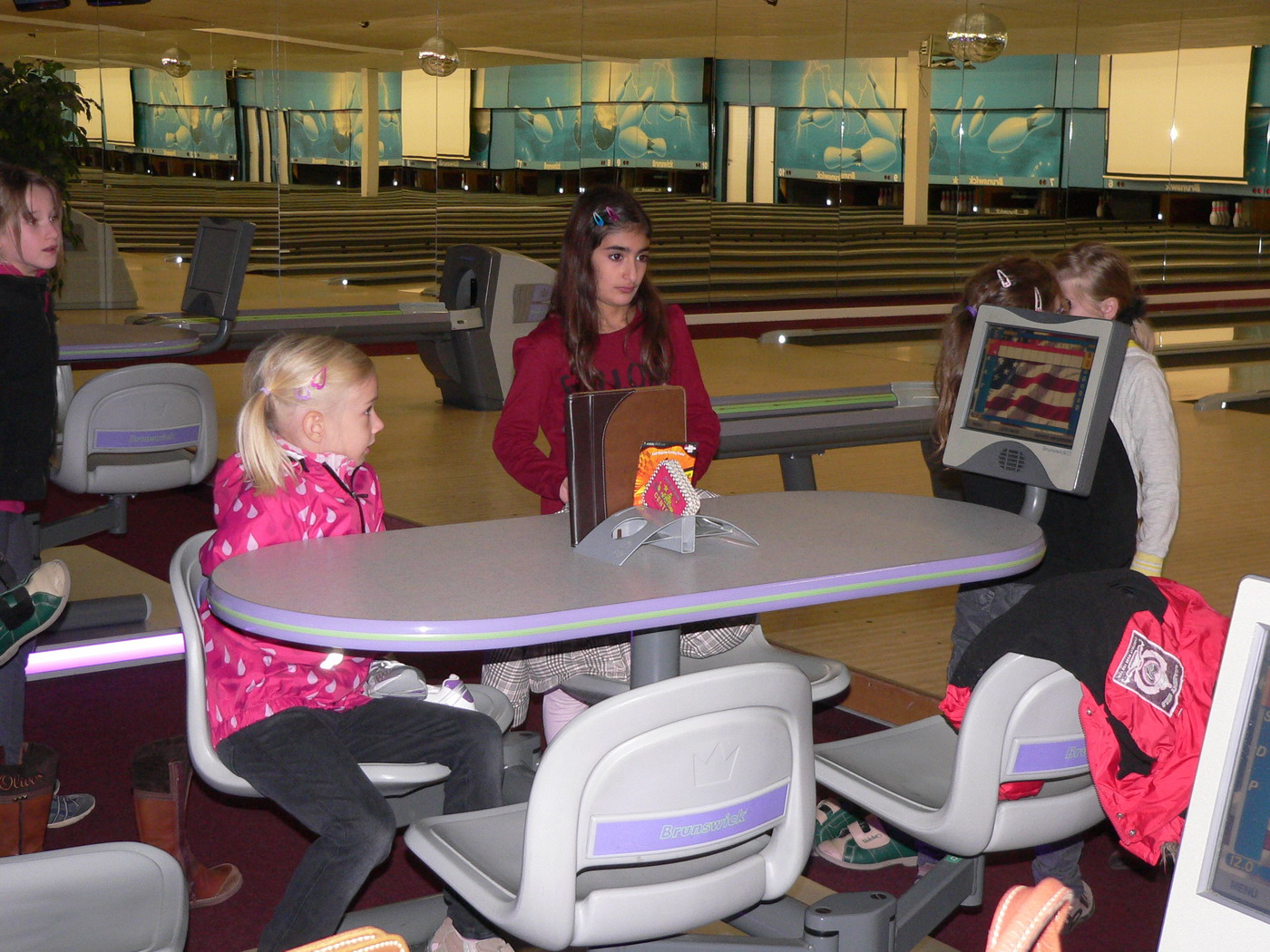 Das Bowling hat mir Spaß gemacht. Ich habe leider nie gewonnen. Die Schuhe sahen lustig aus.