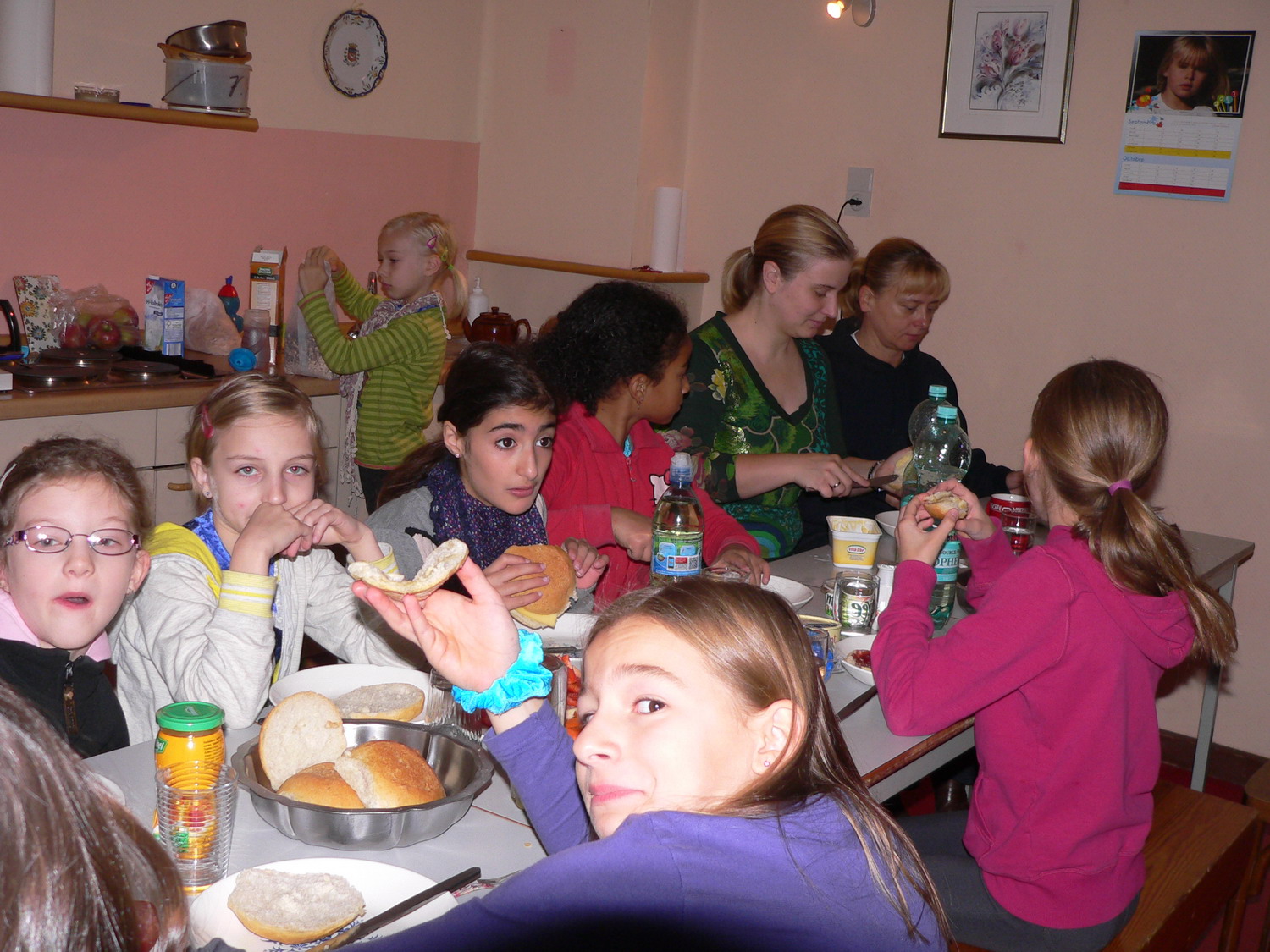 Untergebracht waren wir im Wohnheim “Haus Vinzenz”, wo wir im 2. Oberstock unser “Reich” hatten. Die Mädchen waren auf zwei Zimmer verteilt, wo sie Hochbetten zur Verfügung hatten. Leider waren die oberen Betten ohne Schutzgitter, aber das Problem haben wir ganz einfach gelöst, indem wir die Matratzen zum Schlafen auf den Boden gelegt haben. Im Zimmer, in dem die “Kleinen” schliefen, befanden sich genug Betten, so dass alle Mädchen unten schlafen konnten. Kalina, Franca mit ihrer Tochter Jana, Daniela mit Sabine - alle hatten ihre eigenen Zimmer. Zur Verfügung hatten wir auch eine Küche, wo Daniela und Sabine sehr leckere Gerichte für uns vorbereiteten :-). Dafür vielen Dank den beiden Frauen! In der Küche spielten wir am Abend auch verschiedene Gesellschaftsspiele, guckten Videos oder unterhielten uns einfach.