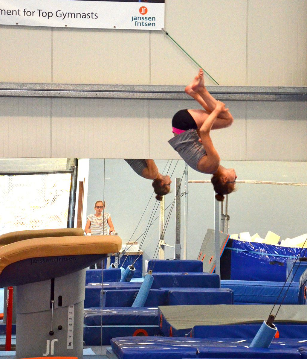Die Halle hat unsere Erwartungen vollkommen erfüllt, zum Teil sogar übertroffen - sie war groß und fabelhaft ausgestattet. Wir konnten alle Tage ganz alleine darin trainieren und alles was sich dort befand, benutzen. Somit haben wir sehr viel an Technik, Ballett, Trampolin und allen turnerischen Geräten trainiert. Jeden Tag absolvierten wir zwei Trainingseinheiten mit einer Pause dazwischen, in der wir von den mitgefahrenen Eltern mit dem Mittagessen versorgt wurden. Wir haben viele neue Elemente an verschiedenen Geräten ausprobiert und einige sogar geschafft, wie z.B. Cecile die Doppelschraube und Malina und Sarah die Einfachschraube am Boden oder Charlotte, Lisa und Celina die Radwende am Balken. Es wurden auch Sohlwellen, Konter, Kippe-Varianten, Flieger am Barren gemacht, am Boden verbesserten wir die gymnastischen Elemente und am Balken probierten wir neue Verbindungen aus.