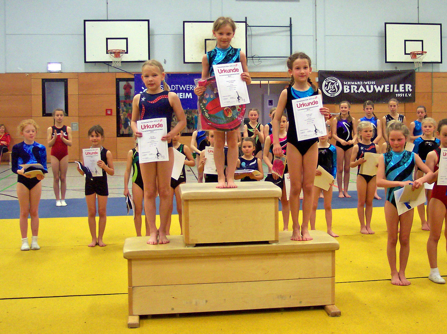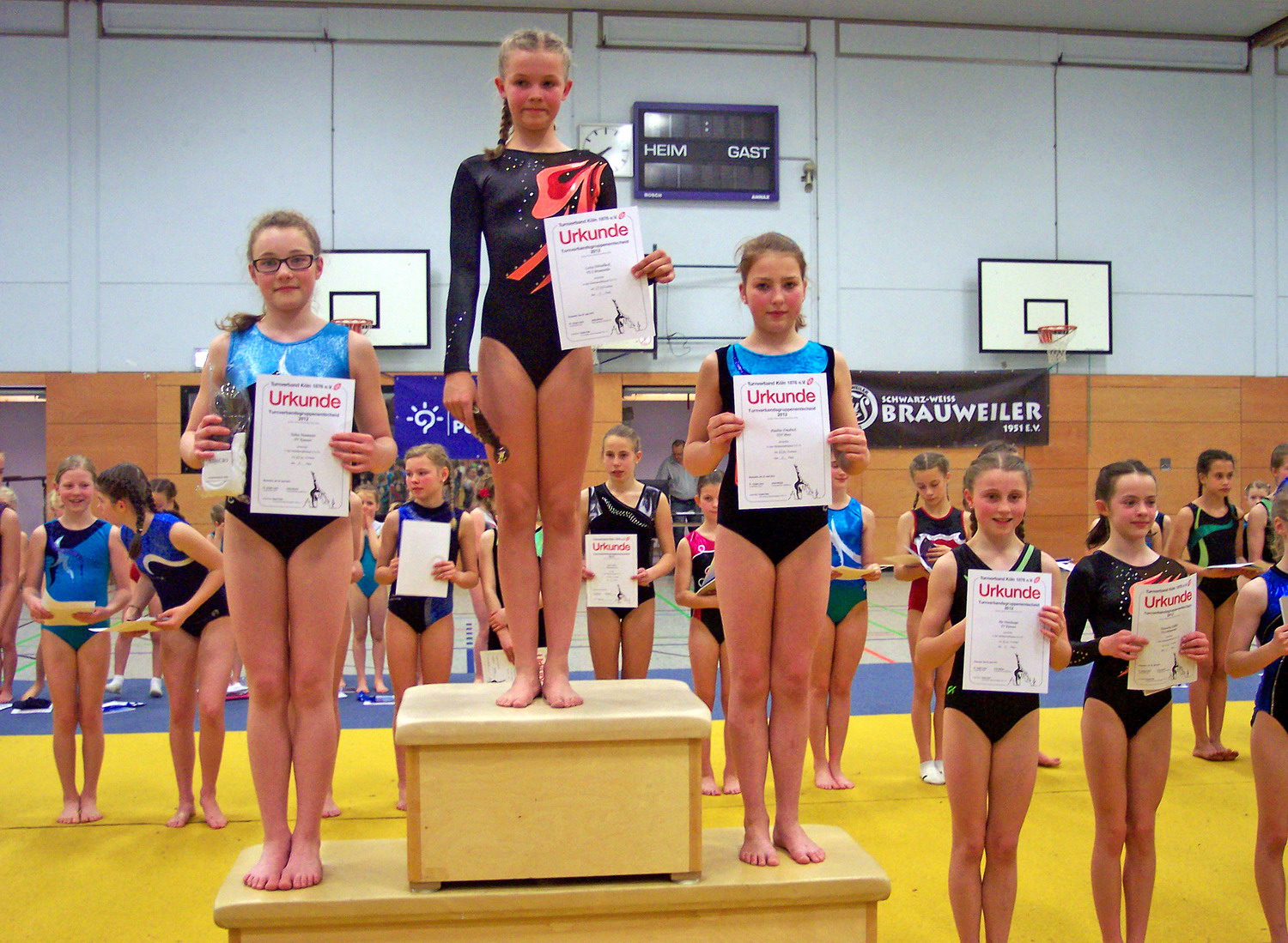 Am 28.04.2012 kämpften acht Turnerinnen des TSV Porz in der Turnhalle an der Kastanienallee in Brauweiler um die Qualifikation zum Landesfinale des Rheinischen Turnerbundes im Pflichtprogramm. Bei diesem Wettkampf nahmen neben den 10 stärksten Turnerinnen jeder Altersklasse des Turnverbands Köln, die ebenfalls 10 stärksten Turnerinnen aus den Turnverbänden Bonn, Düren, Aachen und Rhein-Sieg teil.