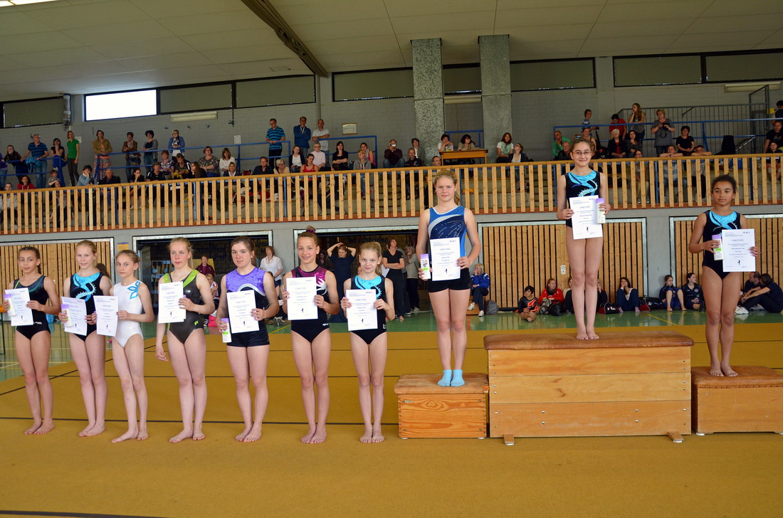 Am 17.05.2014 fand in Monschau, bei strahlendem Sonnenschein, die Verbandsgruppenausscheidung der P-Stufen statt. Es ging darum sich als eine der ersten zehn Turnerinnen jeder Altersklasse, für das Landesfinale im Juni zu qualifizieren.