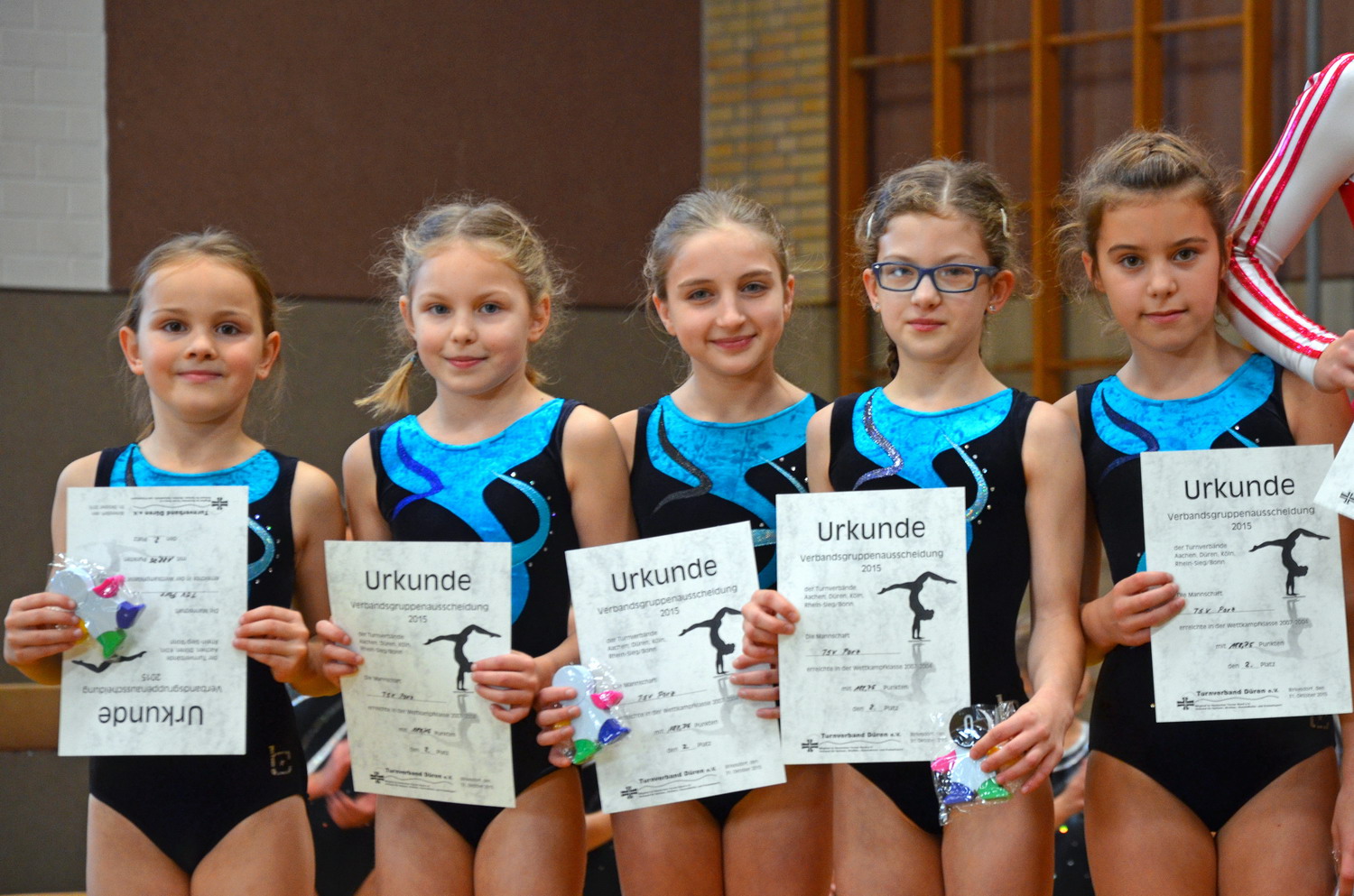 Am Samstag, dem 31.10.2015 fand in Düren-Birkesdorf der Qualifikationswettkampf zum Landesfinale der Pflichtstufen des Rheinischen Turnerbunds statt. Hier durften die jeweils zwei besten Mannschaften der Turnverbände Aachen, Düren, Köln und Rhein-Sieg-Bonn an den Start gehen. In diesem Wettkampf wurden in 5 Altersklassen wiederum jeweils die zwei besten Teams ermittelt, die Ende November beim RTB-Landesfinale um den Titel des Landesmeisters kämpfen dürfen.