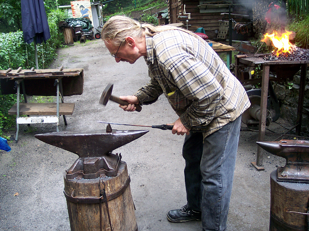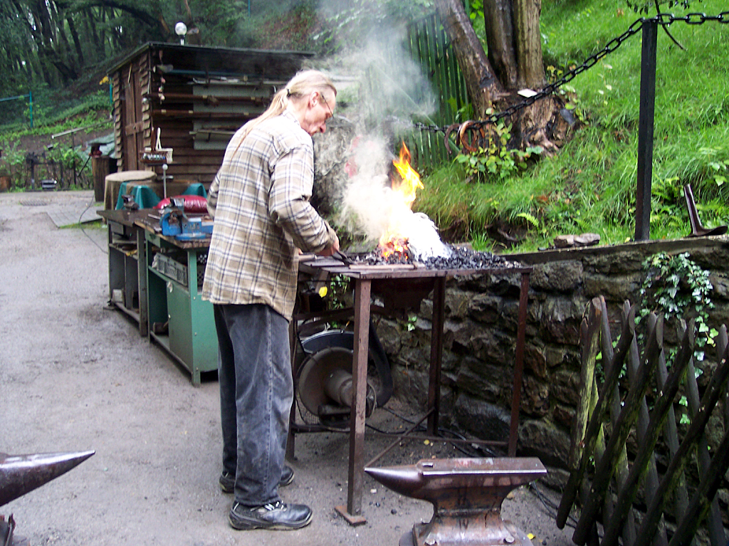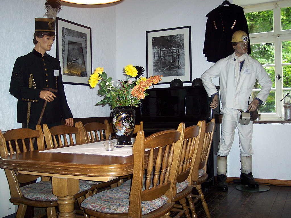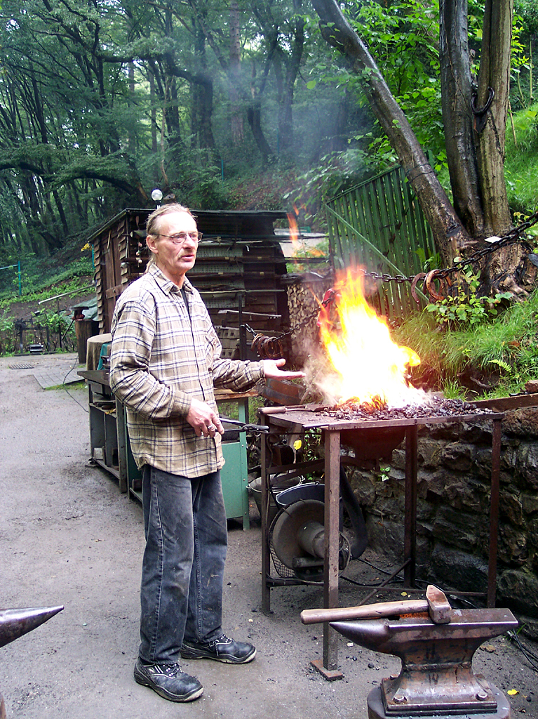 In Gevelsberg stieg unser Reiseführer Herr Jürgen Taake als fachkundiger Begleiter zu. Wir fuhren dann nach Hattingen, wo wir in einen nostalgischen "Schienenbus" stiegen, um zur ehemaligen Zeche "Nachtigall" zu fahren. Diese befindet sich in Witten-Bommern, eine Stollenführung musste leider ausfallen. Es ging zu Fuß weiter Richtung Ortschaft Wetter. Auf diesem Fußmarsch konnten wir so einiges von unserem Reiseleiter über die Bergbaugeschichte erfahren. Am Eingang zum Muttental erzählte er uns, dass die Kohle in dieser Gegend, früher nur durch waagerechte Höhlen im Berg, abgebaut wurde. Diese Einstiegshöhlen mussten über den Wasserstand der Ruhr liegen. Einige Höhlen wurden uns gezeigt, ebenso konnten wir eine alte Schmiede besichtigen, wo uns das Handwerk des Schmiedes aus früherer Zeit vorgeführt wurde. Wir spazierten zum nahe gelegenen Parkplatz zurück, wo unser Bus wartete, der uns nach Alt-Wetter fuhr, um dort im "Westfälischen Hof" unser Mittagessen einzunehmen.
