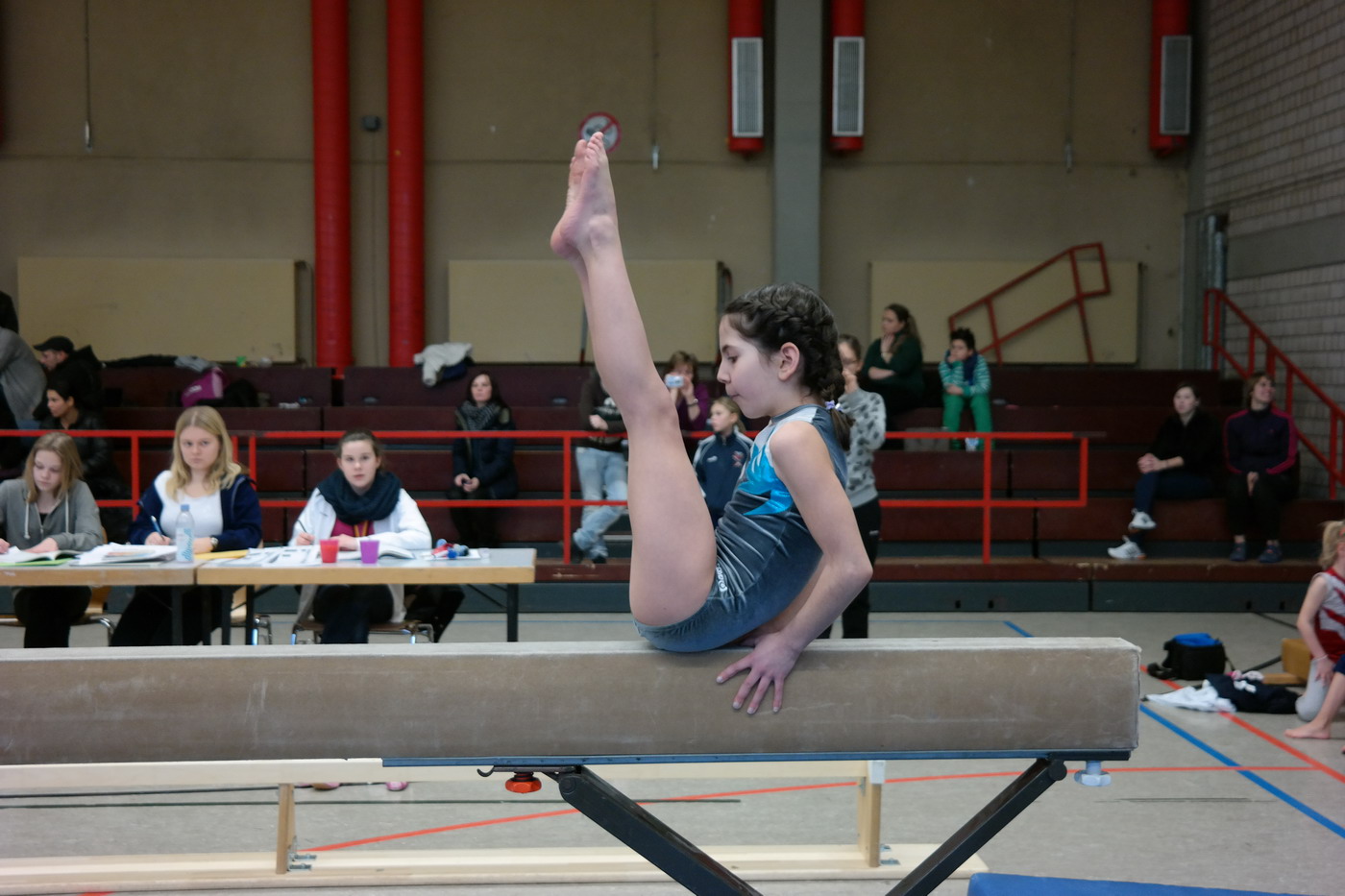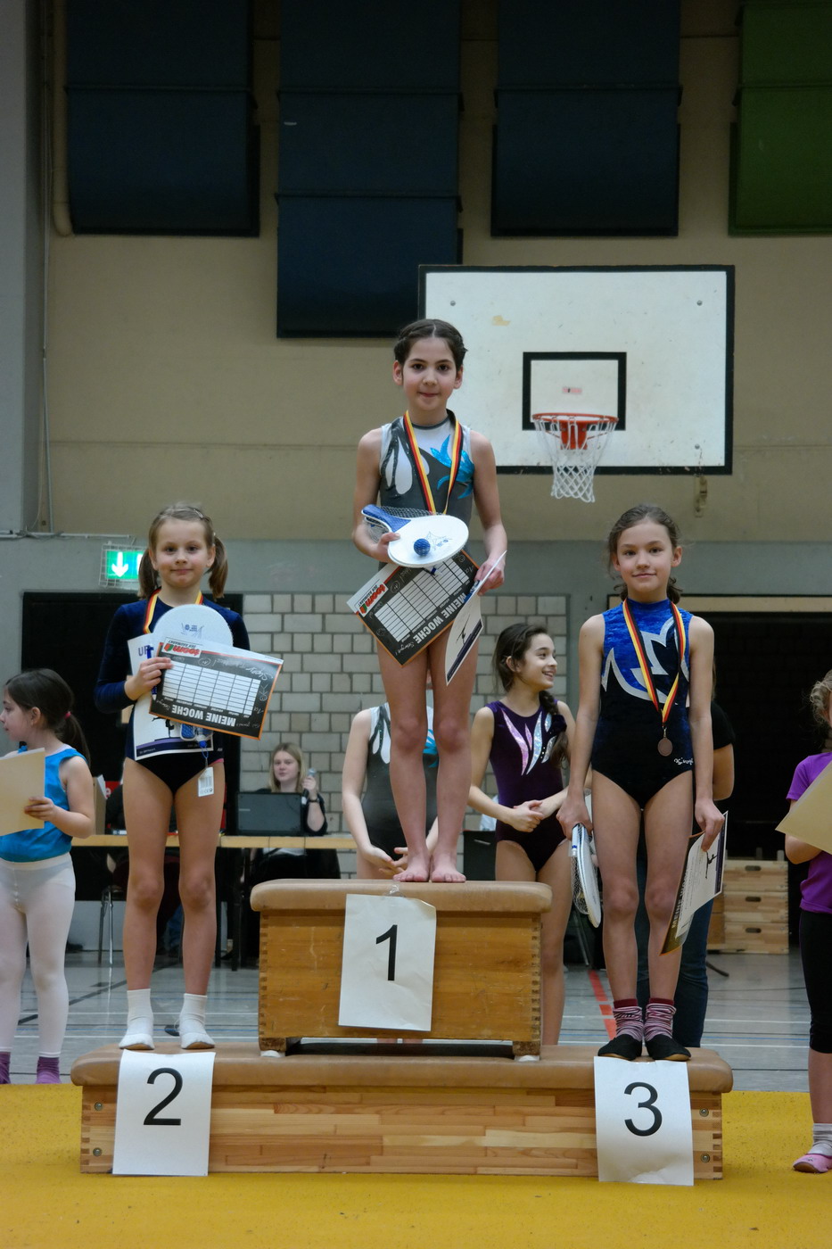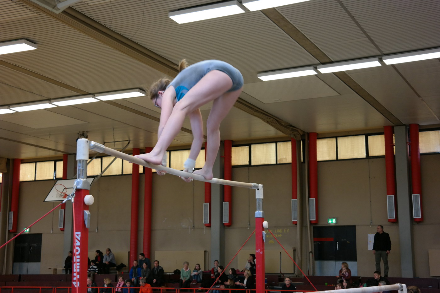 Der erste Durchgang an diesem Sonntagmorgen gehörte den Kürturnerinnen. Sie nutzten die Gelegenheit, die im Wintertraining neu erlernten Elemente erstmals unter Wettkampfbedingungen zu präsentieren, und das konnte sich durchaus sehen lassen. Unter den Mädchen der Leistungsgruppe siegte in der LK1 (Jg. 2002 u. älter) Cecile Weissenburger vor Pauline Friedrich und Sarah Shirvani Zadeh, während sich Maria Rundau in der LK3 (2003 u. jünger) vor Natalie und Angelina Kann oben auf das Treppchen stellen durfte.