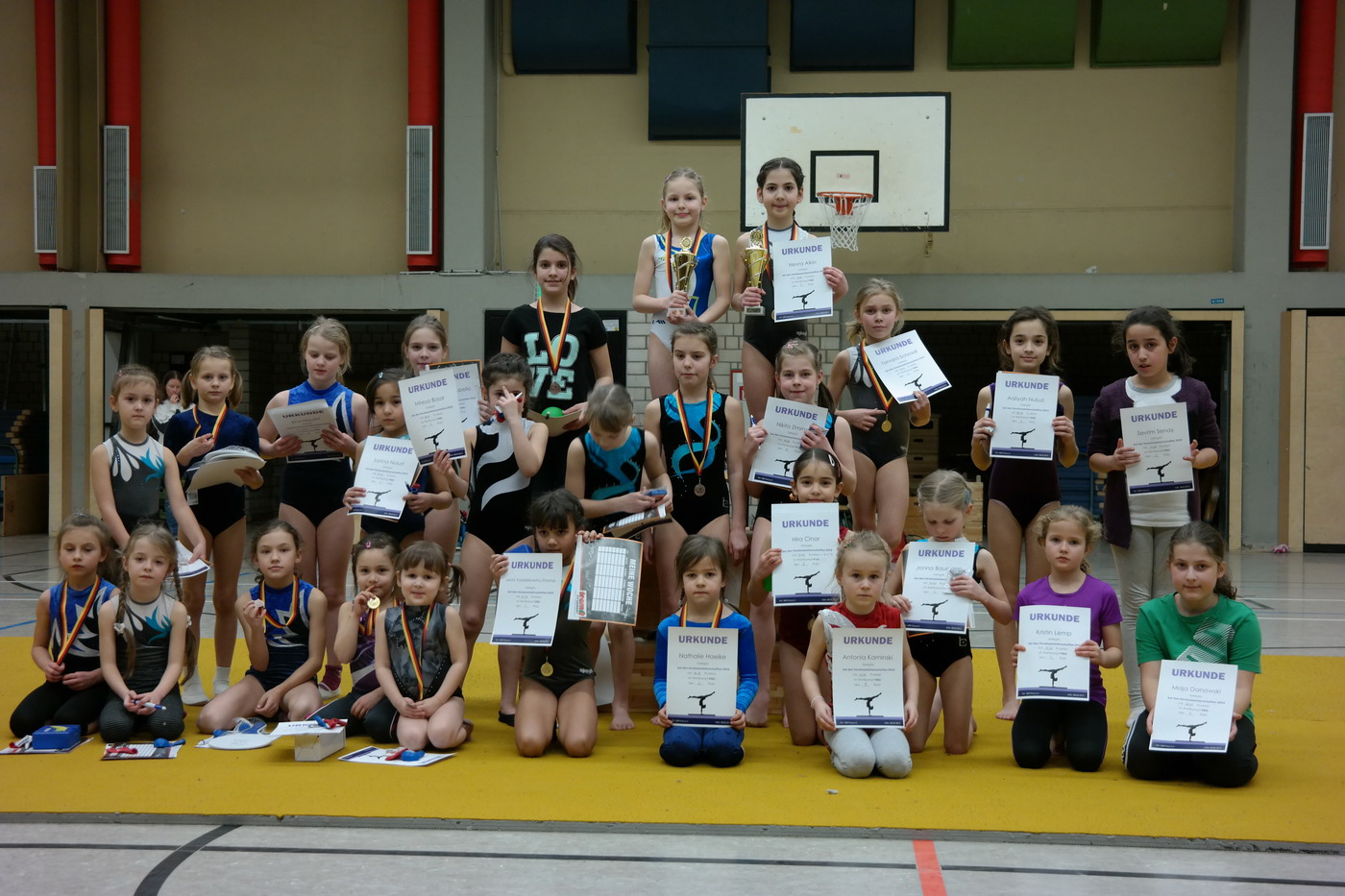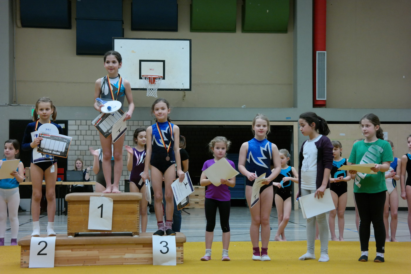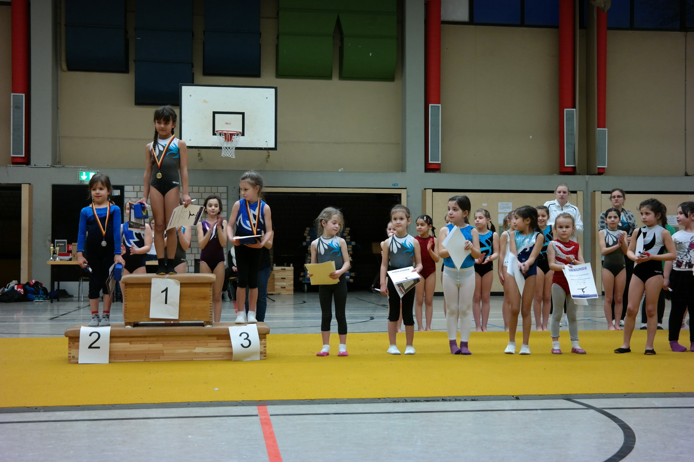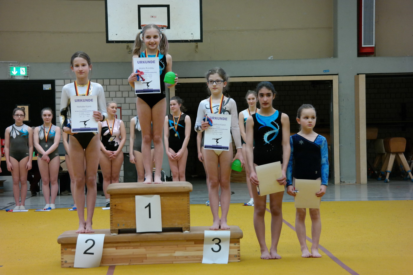 Im letzten Durchgang waren die meisten Turnerinnen vertreten und um den besten Platz kämpften hier auch die jüngsten Mädchen der Leistungsgruppe. Alle gingen sehr diszipliniert zu Werke, so dass der Wettkampf dem Zeitplan entsprechend durchgeführt werden konnte. Bei den jüngsten Turnerinnen (Jg. 2009-10) erreichte den 1. Rang Selin Mavis und den 2. Platz belegte Katja Koroliowa. Im Jahrgang 2007-08 gewann Leoni Vadakkinethu-Thomas knapp vor Nathalie Haelke und Angelina Stettinger. Bei den 9- u. 10jährigen machten Nevra Alkin, Mia-Sofi Barz und Annika Metzger die Treppchenplätze unter sich aus, während bei den Jahrgängen 2004-05 Tamara Schmidt vor Antonia Lubello und Eliz Özdemir oben stand.