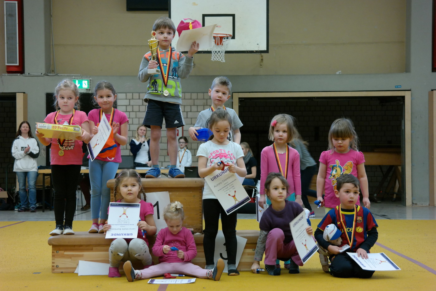 Mit etwas Verzögerung durften im zweiten Durchgang die Kleinkinder an den Start. Teilweise aufgeregt, teilweise amüsant-souverän meisterten sie ihre Aufgaben mit Bravour. Im jüngsten Jahrgang (2010 u. jünger) durfte Noemi Zimmer ganz oben auf's Treppchen. Gerard Müller Fabregas und Emma Goebel belegten die Plätze 2 und 3. Bei den 6- u. 7-jährigen gewann Christopher Chevalier vor Romy Reymond und Alexandros Tsavelis.
