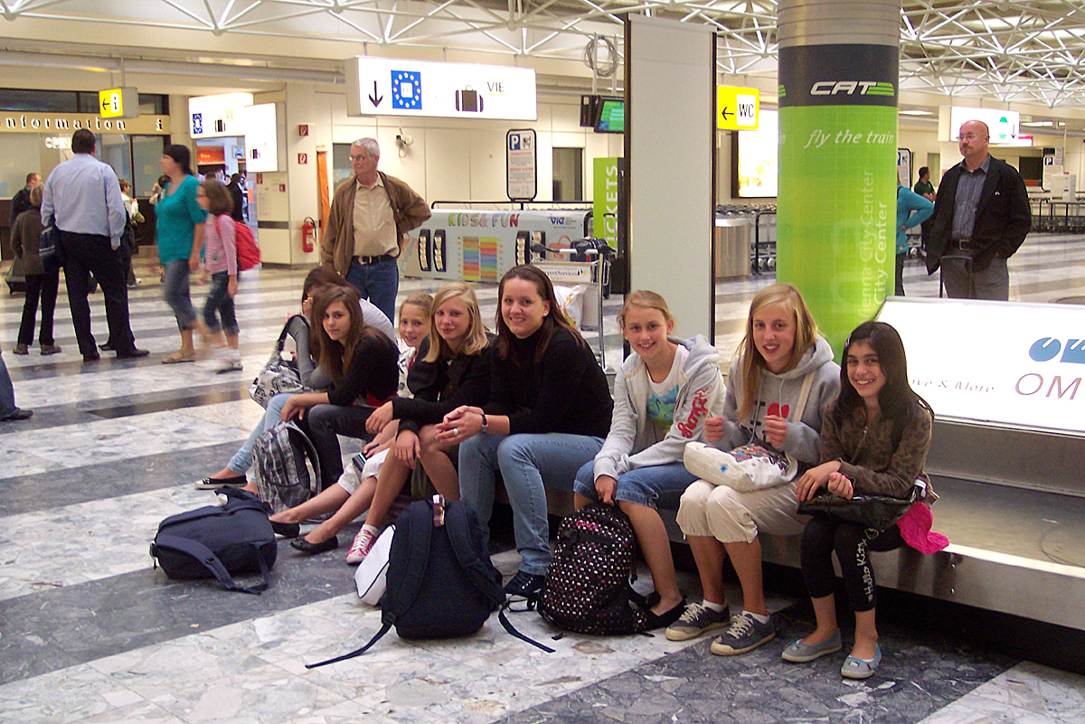 Wir flogen von Deutschland nach Wien. Im Flugzeug bekamen wir Gutscheine zum Essen. Wir haben viel miteinander geredet. Nach der Landung mussten wir noch mit dem Auto eine längere Strecke fahren. Danach kamen wir in der Pension an und bekamen unsere Zimmer zugeteilt. Dann packten wir alle unsere Koffer aus und gingen essen. Die Pension war mittelgroß und schön. Die Stadt Veszprém ist ein kleinerer Ort mit einem Feuerturm, Kapelle und Museen. Dort waren wir in einem Einkaufszentrum, wo wir Andenken kaufen konnten.