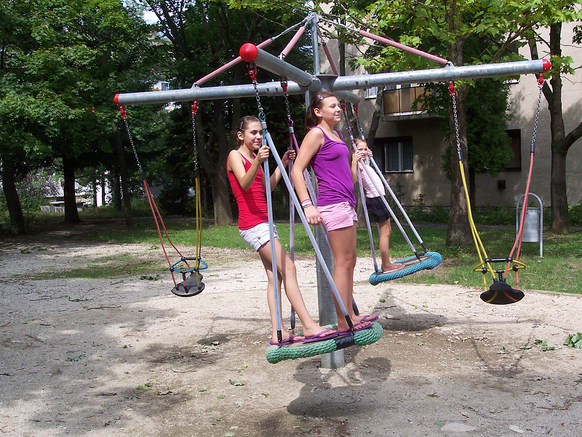 Im Abenteuerpark haben wir viele lustige Sachen gemacht. Zuerst sind wir auf einer Reife gerutscht. Isabel, Mahsa und Pauline sind dabei sogar nass geworden, weil sie in einen See rutschten. Kalina und Karolina hatten bei der Rutsch-Tour auch sehr viel Spaß.